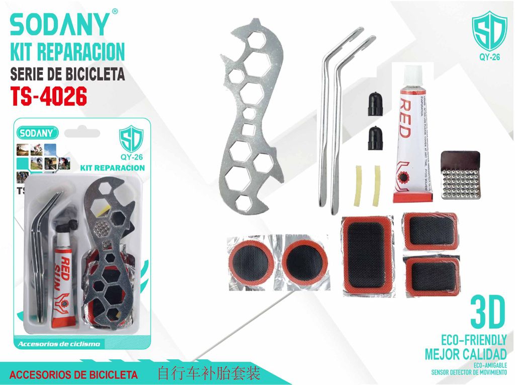 El kit de reparación SODANY TS-4026 es una herramienta esencial para los ciclistas que desean estar preparados ante imprevistos con las llantas de sus bicicletas. Este kit compacto incluye todo lo necesario para reparar pinchazos de forma rápida y eficiente.