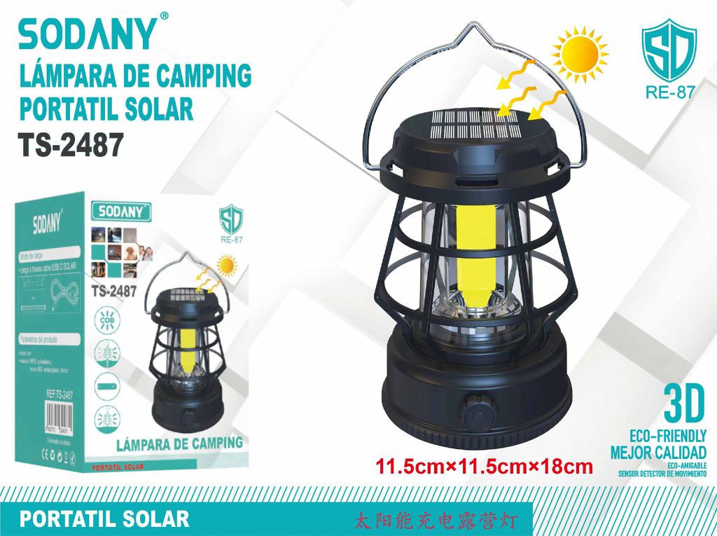 La Lámpara de Camping Portátil Solar TS-2487 de SODANY es la elección perfecta para actividades al aire libre, como acampar, caminar o incluso para el jardín. Gracias a su sistema de carga solar, no necesitas depender de baterías convencionales, lo que la convierte en una solución ecológica y económica. Su diseño tipo linterna clásica combina funcionalidad y estética, ofreciendo una excelente fuente de luz en cualquier lugar.
