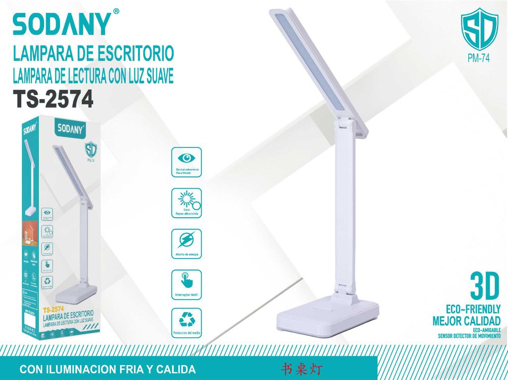 La lámpara de escritorio SODANY TS-2574 es una opción elegante y eficiente para iluminar tu espacio de trabajo. Con su iluminación ajustable entre luz fría y cálida, proporciona el ambiente perfecto para leer, estudiar o trabajar, cuidando la vista gracias a su tecnología de iluminación suave y sin deslumbramiento. Su diseño moderno y plegable la hace ideal para escritorios de cualquier tamaño.
