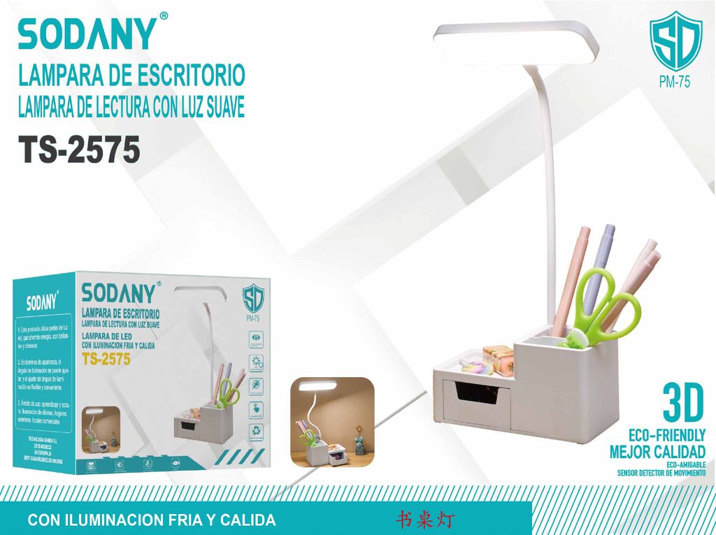 La lámpara de escritorio SODANY TS-2575 está diseñada no solo para proporcionar una iluminación eficaz, sino también para optimizar el espacio de trabajo. Con un compartimento integrado para organizar materiales de oficina como tijeras, bolígrafos y otros objetos pequeños, esta lámpara es perfecta para quienes buscan mantener su área de trabajo ordenada y bien iluminada.