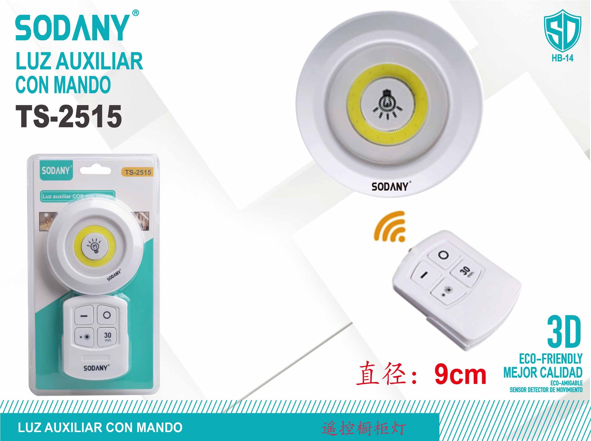 La SODANY Luz Auxiliar con Mando TS-2515 es una lámpara práctica y funcional que se activa y controla fácilmente mediante un mando a distancia. Perfecta para iluminar armarios, pasillos y cualquier espacio donde se necesite una luz adicional con control remoto, ofrece comodidad y versatilidad con un diseño compacto y eco-friendly.
