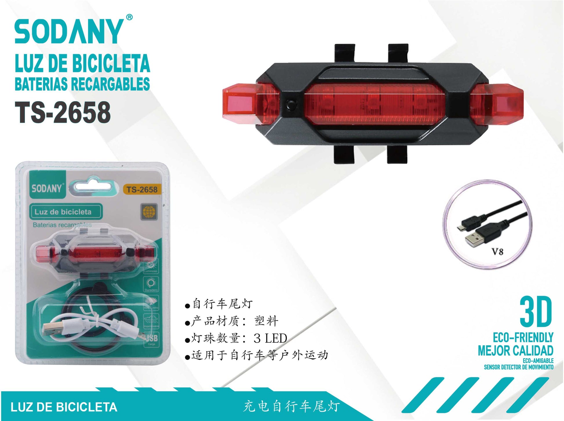 SODANY Luz de Bicicleta Recargable TS-2658