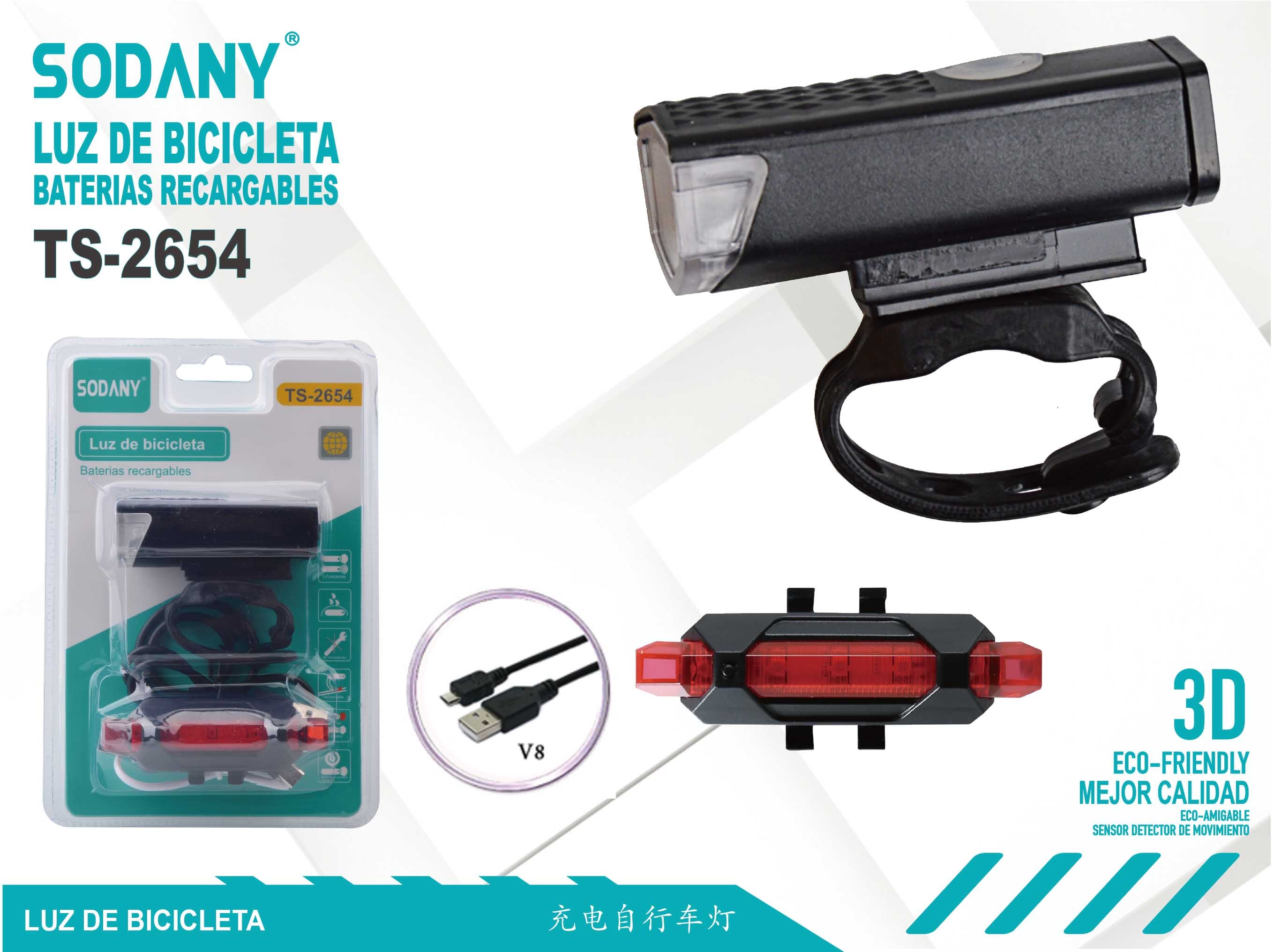La luz de bicicleta recargable SODANY TS-2654 es una solución moderna y ecológica para la seguridad vial en bicicleta. Este set incluye una luz delantera potente y una luz trasera de advertencia, ambas con baterías recargables. Con su conexión USB tipo V8, puedes cargar las luces fácilmente, asegurando una larga duración sin necesidad de reemplazar pilas. Su diseño compacto y fácil de montar es ideal para cualquier ciclista que busque una iluminación segura y efectiva.