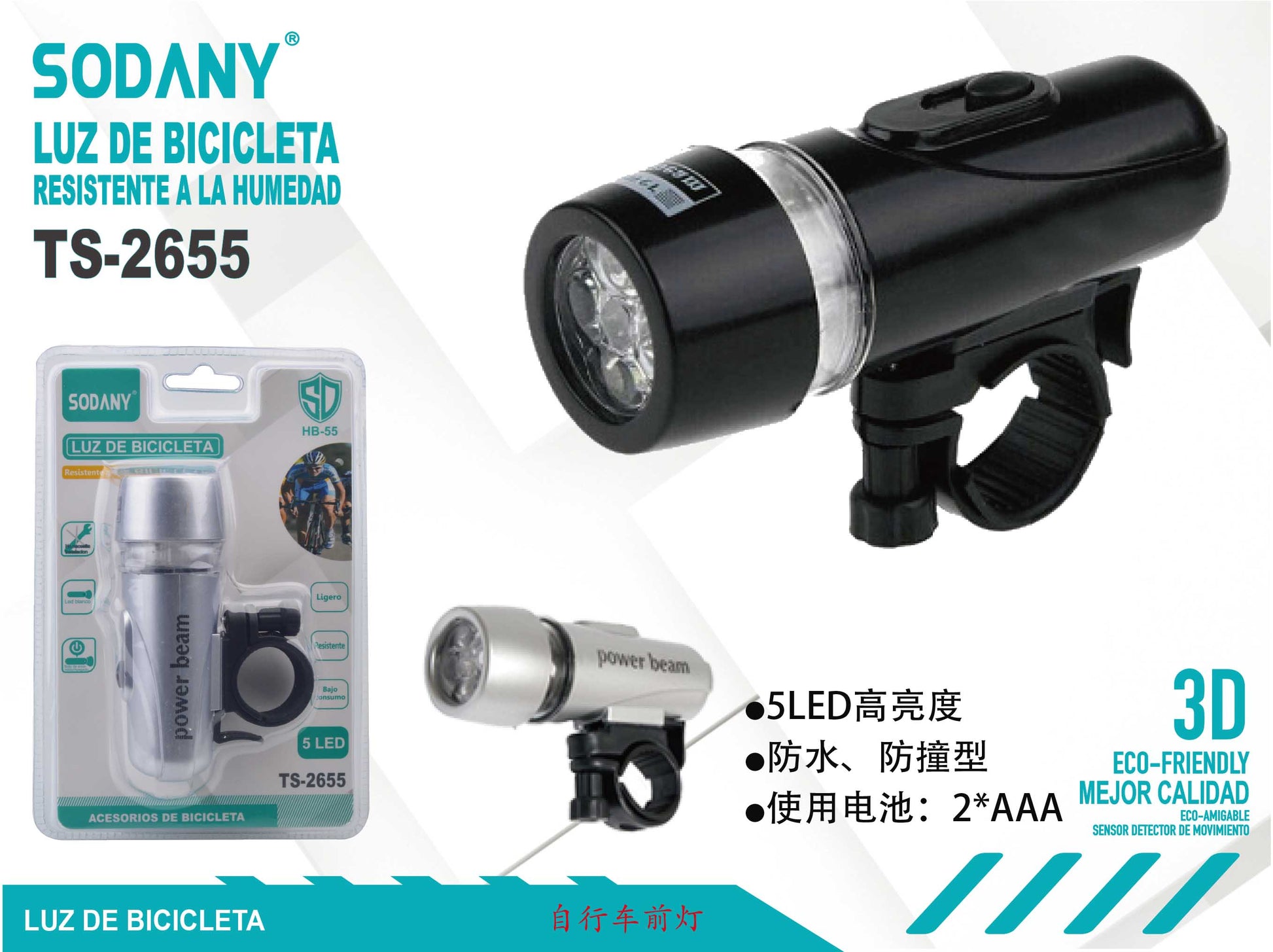 La luz de bicicleta SODANY TS-2655 es perfecta para mantener la visibilidad durante paseos nocturnos o en condiciones de poca luz. Equipado con 5 LEDs de alto brillo, ofrece una iluminación potente y eficiente. Su diseño resistente al agua y a los golpes la convierte en una opción ideal para cualquier condición climática. Fácil de instalar en cualquier bicicleta con su sistema de montaje rápido y seguro.