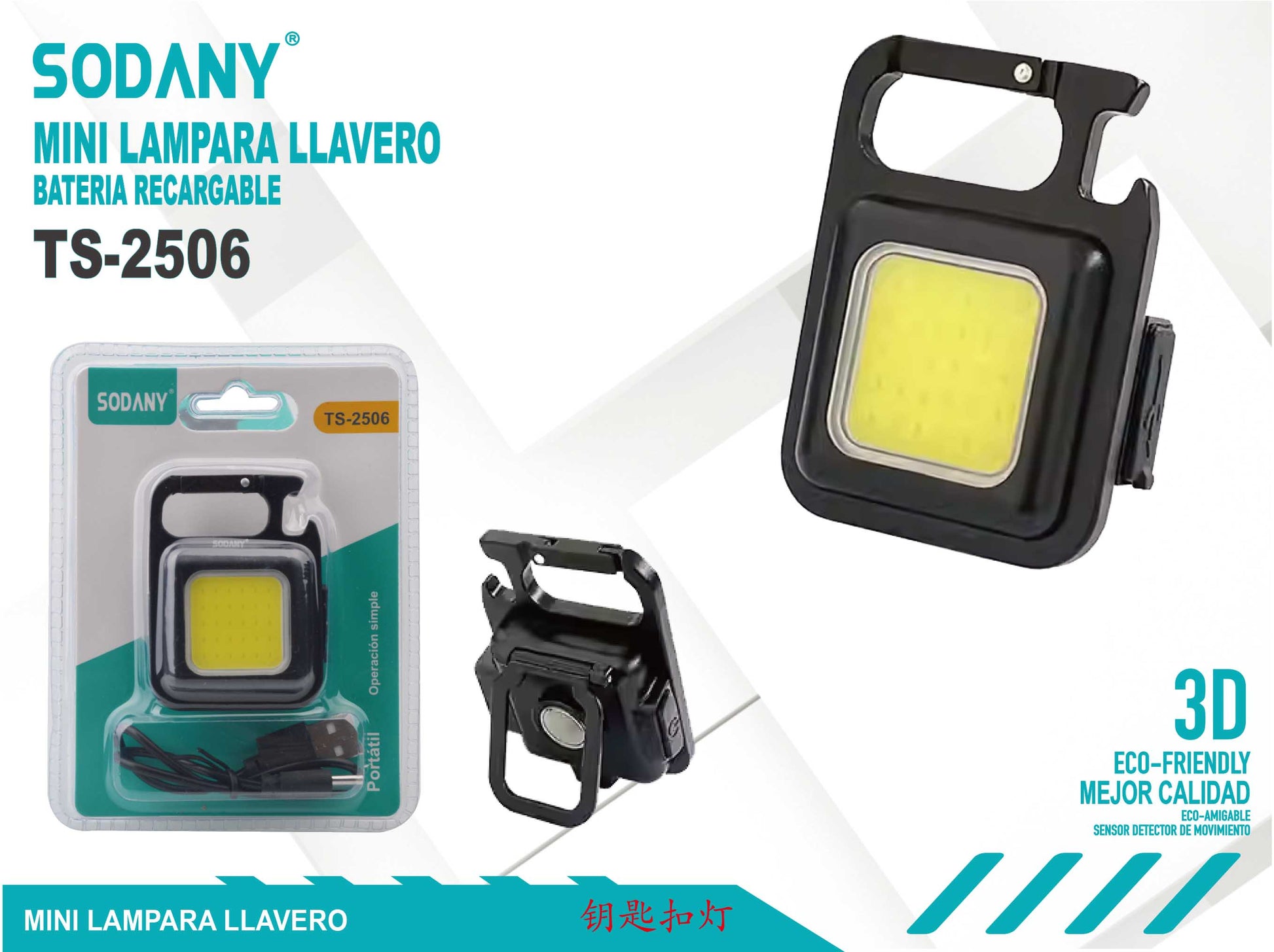 La mini lámpara llavero SODANY TS-2506 es una herramienta portátil y práctica que combina diseño compacto con una iluminación eficiente. Es ideal para llevar en el llavero o usar en situaciones donde se necesita luz de emergencia o iluminación rápida. Además, cuenta con una batería recargable para mayor comodidad.