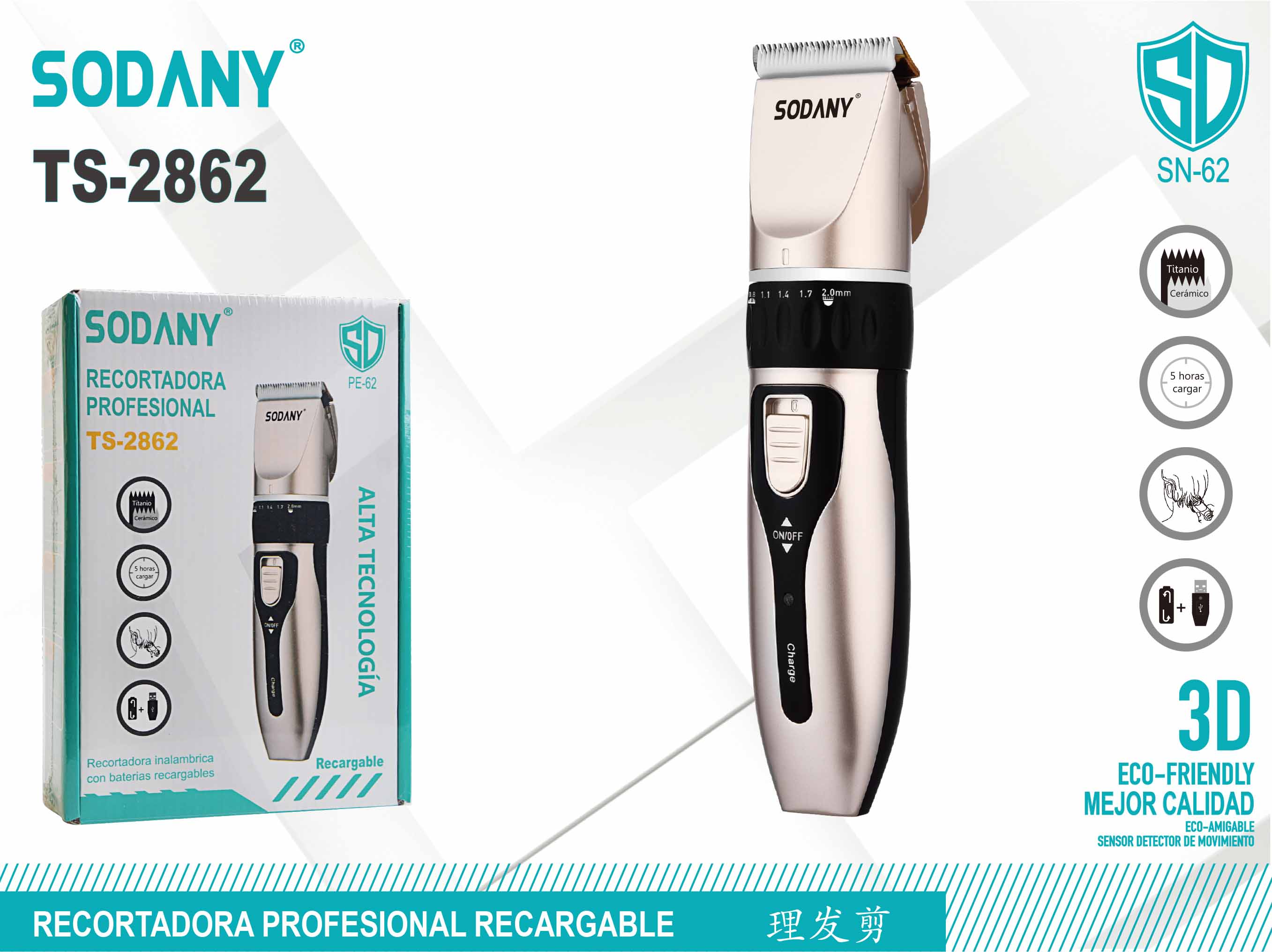 La recortadora profesional recargable SODANY TS-2862 combina tecnología avanzada y un diseño ergonómico para ofrecer una experiencia de corte precisa y eficiente. Con su batería recargable de larga duración y sus cuchillas de alta calidad, esta recortadora es ideal tanto para uso profesional como doméstico. Su diseño sofisticado y funcionalidades ajustables permiten conseguir el estilo deseado de manera fácil y rápida.