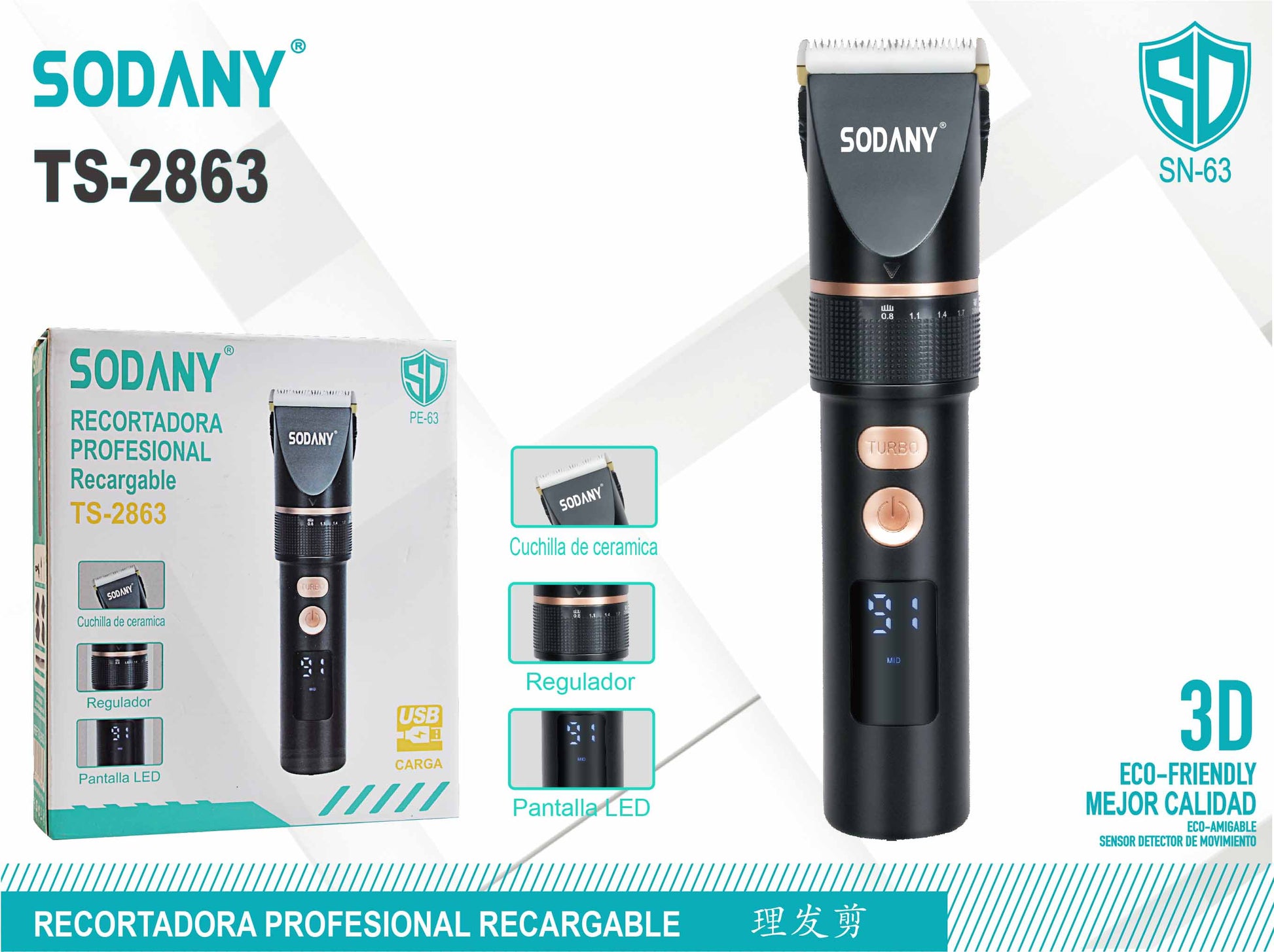 La recortadora profesional recargable SODANY TS-2863 ofrece una combinación de alta tecnología y diseño elegante para un corte preciso y eficiente. Equipada con una cuchilla de cerámica de larga duración y una pantalla LED que muestra el nivel de batería y la velocidad, esta recortadora es ideal tanto para profesionales como para uso personal. Su diseño ergonómico y su potente motor garantizan un rendimiento superior en cada uso.
