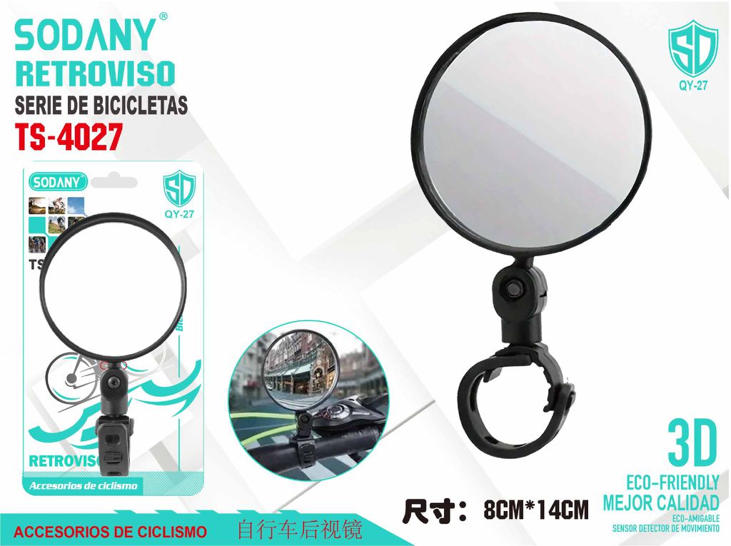El retrovisor SODANY TS-4027 está diseñado para mejorar la seguridad al montar en bicicleta, permitiendo al ciclista ver el tráfico o cualquier obstáculo detrás sin la necesidad de girar la cabeza.
