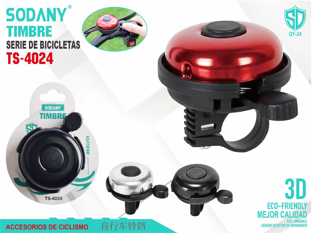El timbre de bicicleta SODANY TS-4024 es un accesorio esencial para cualquier ciclista. Con un diseño compacto y moderno, está disponible en varios colores, brindando tanto funcionalidad como estilo a tu bicicleta. Este timbre proporciona un sonido claro y fuerte, ideal para alertar a peatones y otros ciclistas de tu presencia, mejorando la seguridad en la vía.