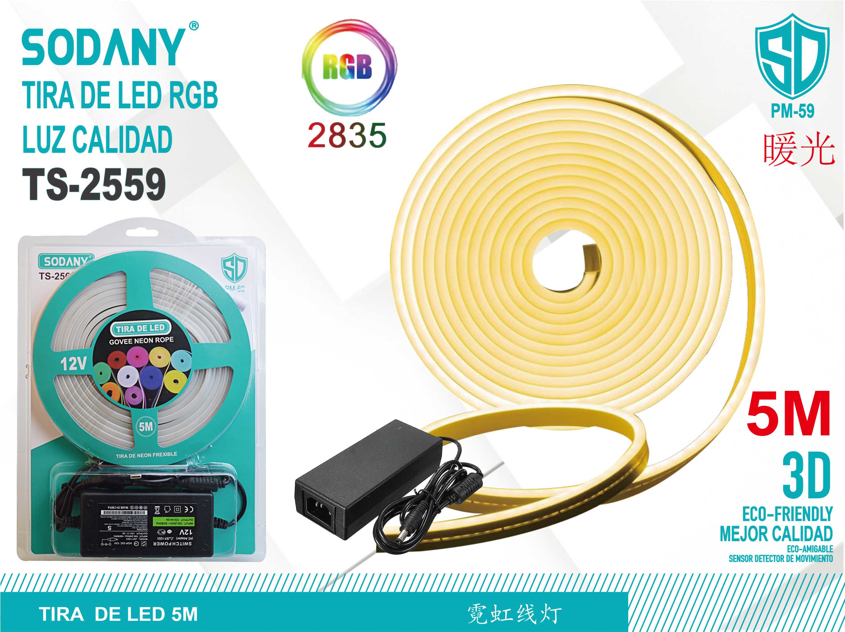 SODANY Tira de LED RGB Luz Calida TS-2559