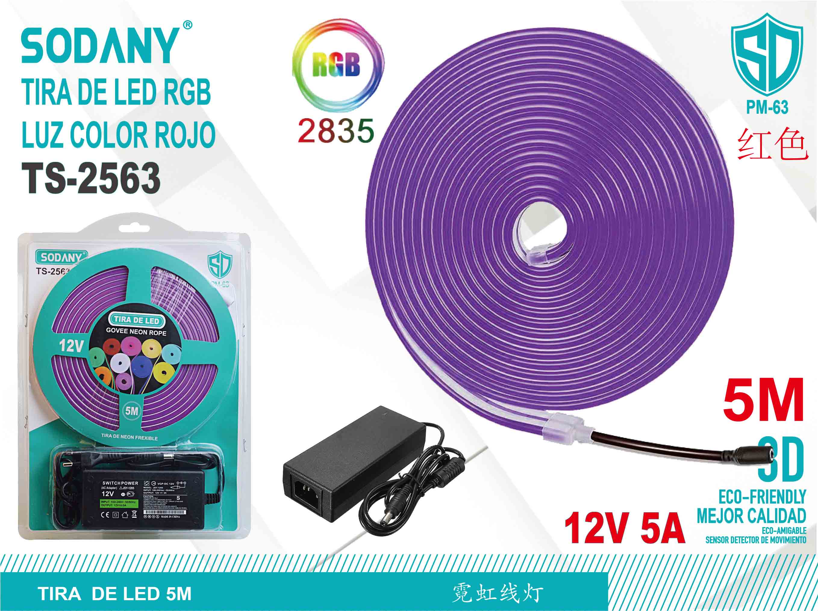 La tira de LED SODANY TS-2563 con una longitud de 5 metros y tecnología 2835 emite una elegante luz color púrpura. Este producto es perfecto para agregar un toque de estilo a cualquier ambiente, ideal para decoraciones en interiores y exteriores. Su diseño flexible y fácil de instalar la convierte en una opción versátil para iluminar cualquier espacio.