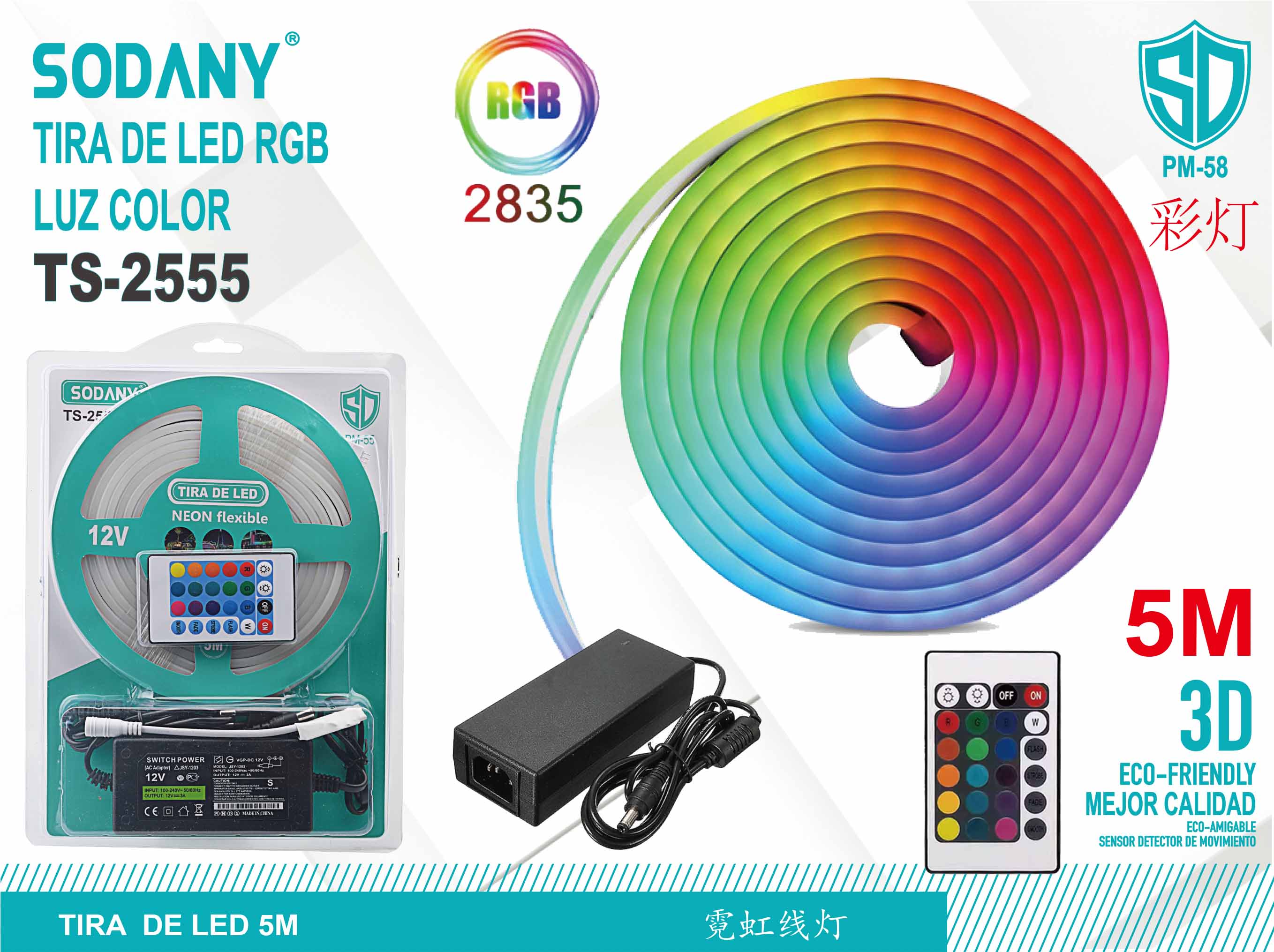La tira de LED RGB SODANY TS-2555 de 5 metros es la opción perfecta para decorar e iluminar cualquier espacio con estilo. Su tecnología RGB 2835 ofrece una amplia gama de colores vibrantes, lo que permite crear efectos de iluminación dinámicos y llamativos. Con su flexibilidad y diseño resistente, esta tira LED es ideal tanto para interiores como para exteriores.