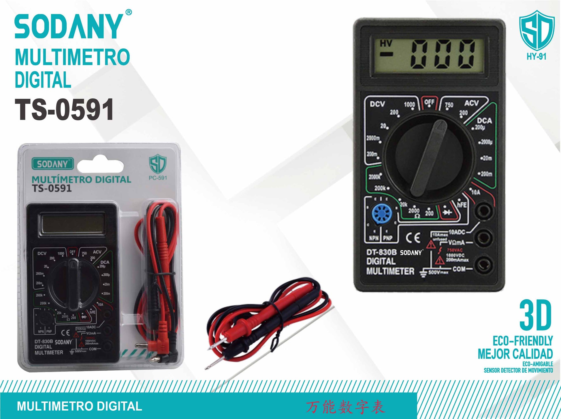 El multímetro digital Sodany TS-0591 es una herramienta indispensable para técnicos, ingenieros y aficionados al bricolaje. Este dispositivo versátil permite realizar mediciones precisas y confiables de voltaje, corriente y resistencia en diversas aplicaciones eléctricas y electrónicas.