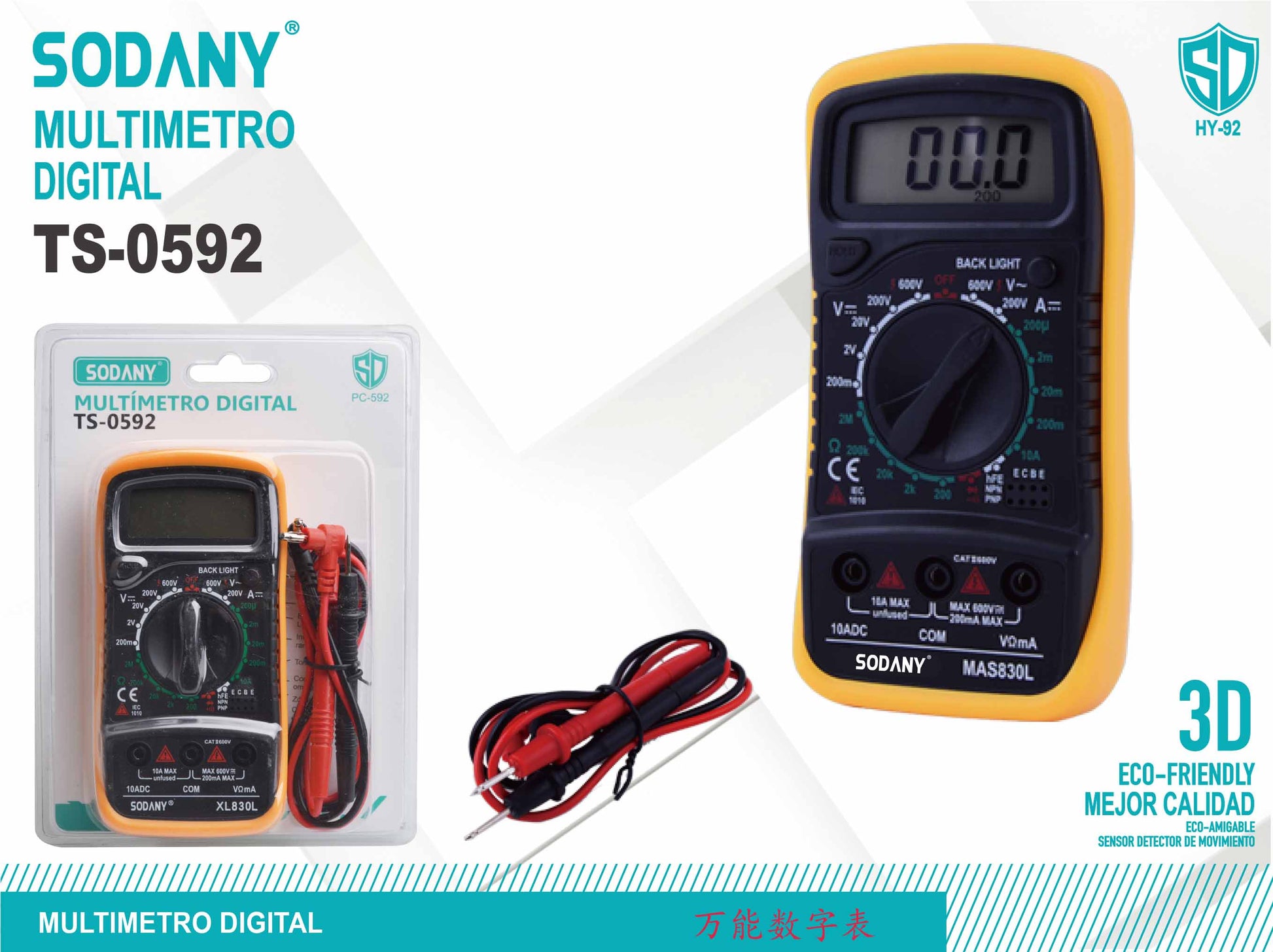 El multímetro digital Sodany TS-0592 es una herramienta esencial para cualquier profesional o aficionado a la electrónica. Ofrece mediciones precisas y fiables de voltaje, corriente y resistencia, siendo ideal para una variedad de aplicaciones tanto en el hogar como en el taller.