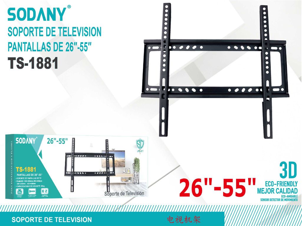 El Sodany TS-1881 es un soporte de pared de alta resistencia, diseñado específicamente para televisores de pantalla plana de 26 a 55 pulgadas. Este soporte permite montar tu televisor de forma segura en la pared, optimizando el espacio en tu hogar y mejorando la estética de cualquier habitación.