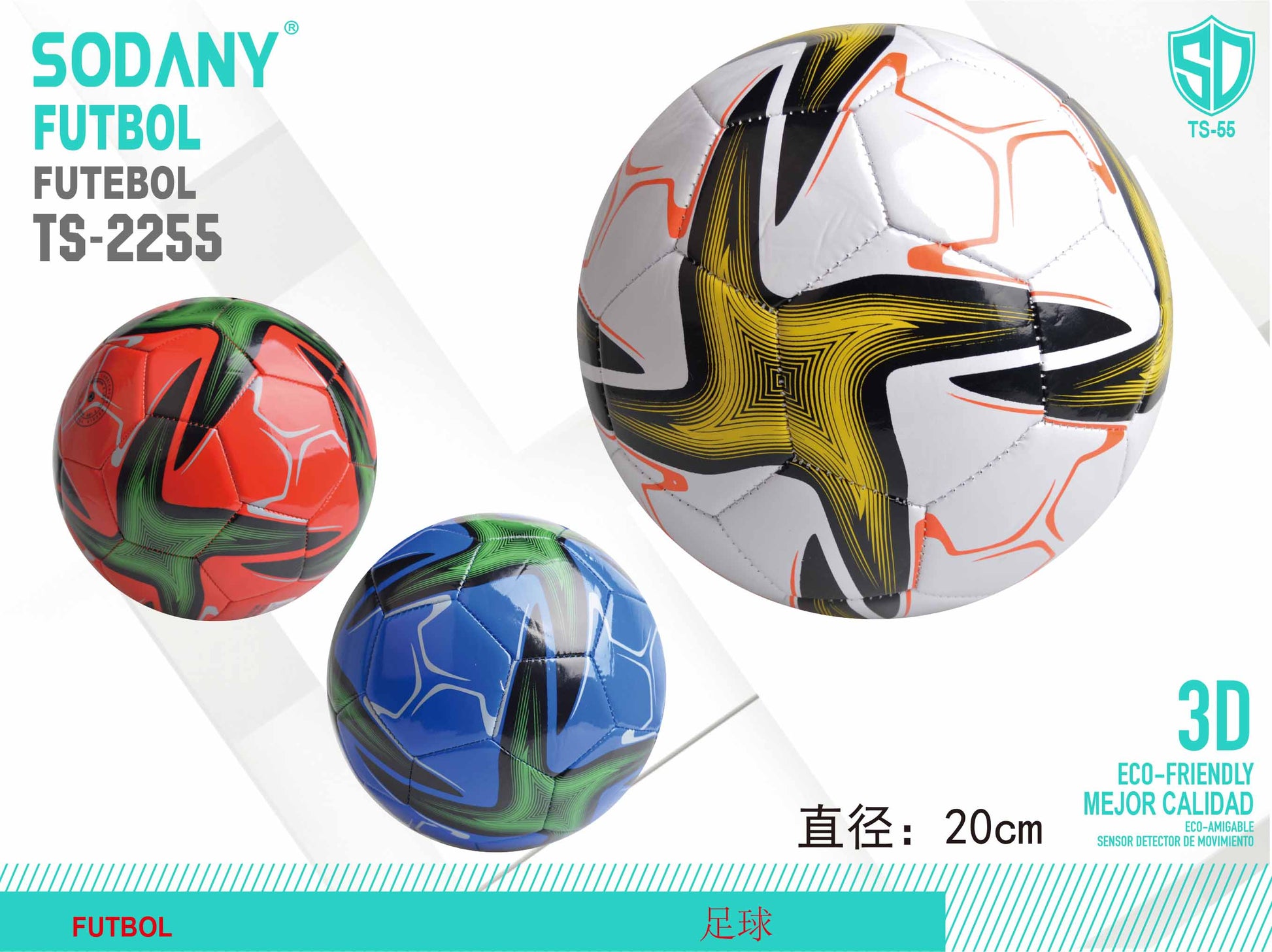 El balón de fútbol Sodany TS-2255 es perfecto para los entusiastas del fútbol que desean un balón atractivo y de alta calidad. Este modelo presenta un diseño moderno con una estrella en el centro y está disponible en tres colores vibrantes: blanco con detalles en negro y amarillo, rojo con verde, y azul con verde.
