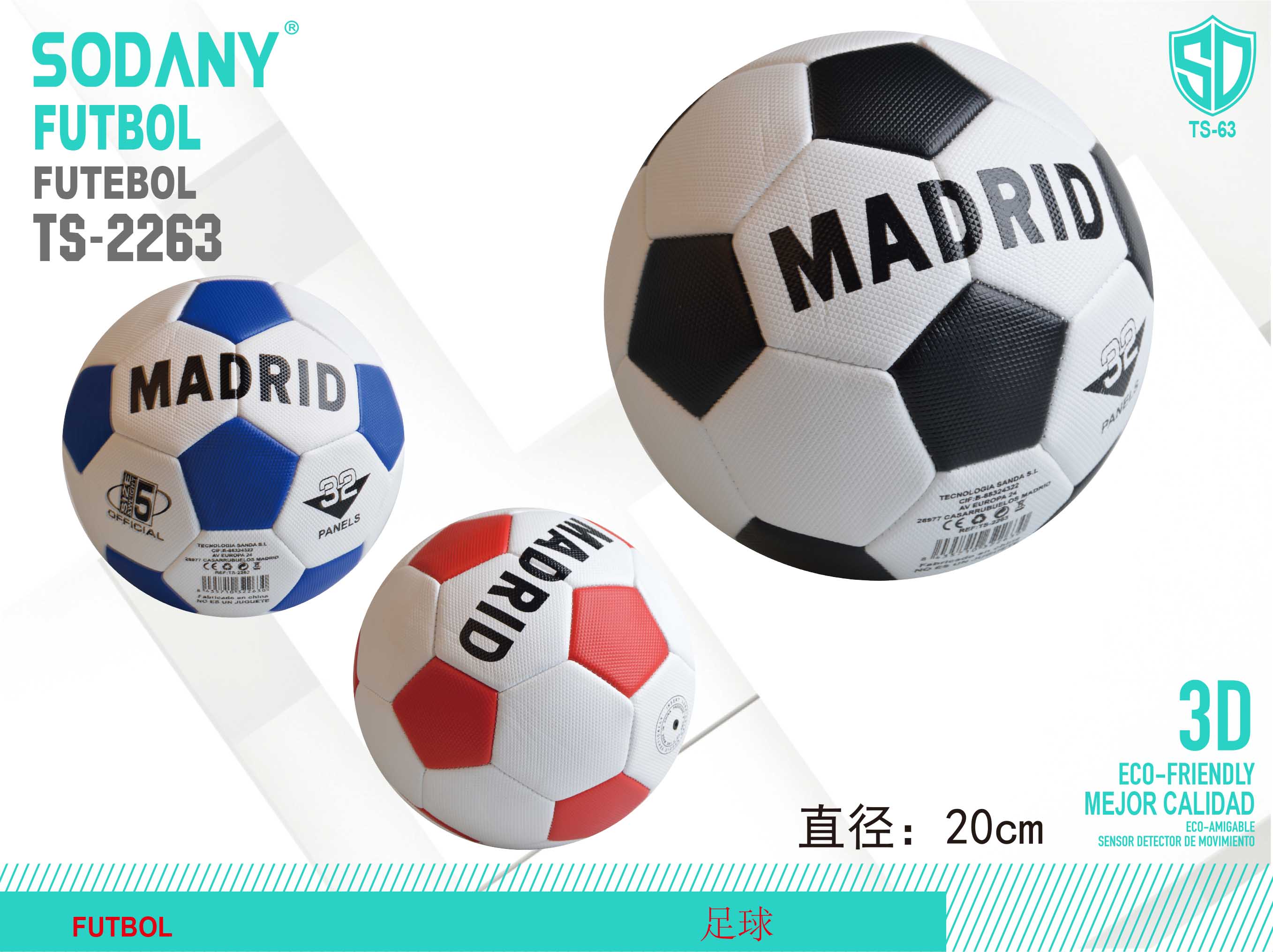El balón de fútbol Sodany TS-2263 es una opción ideal para los amantes del fútbol que buscan un balón de calidad con un diseño distintivo. Decorado con la palabra "Madrid" y disponible en tres combinaciones de colores (azul y blanco, rojo y blanco, y negro y blanco), este balón es perfecto tanto para juegos recreativos como para coleccionistas.