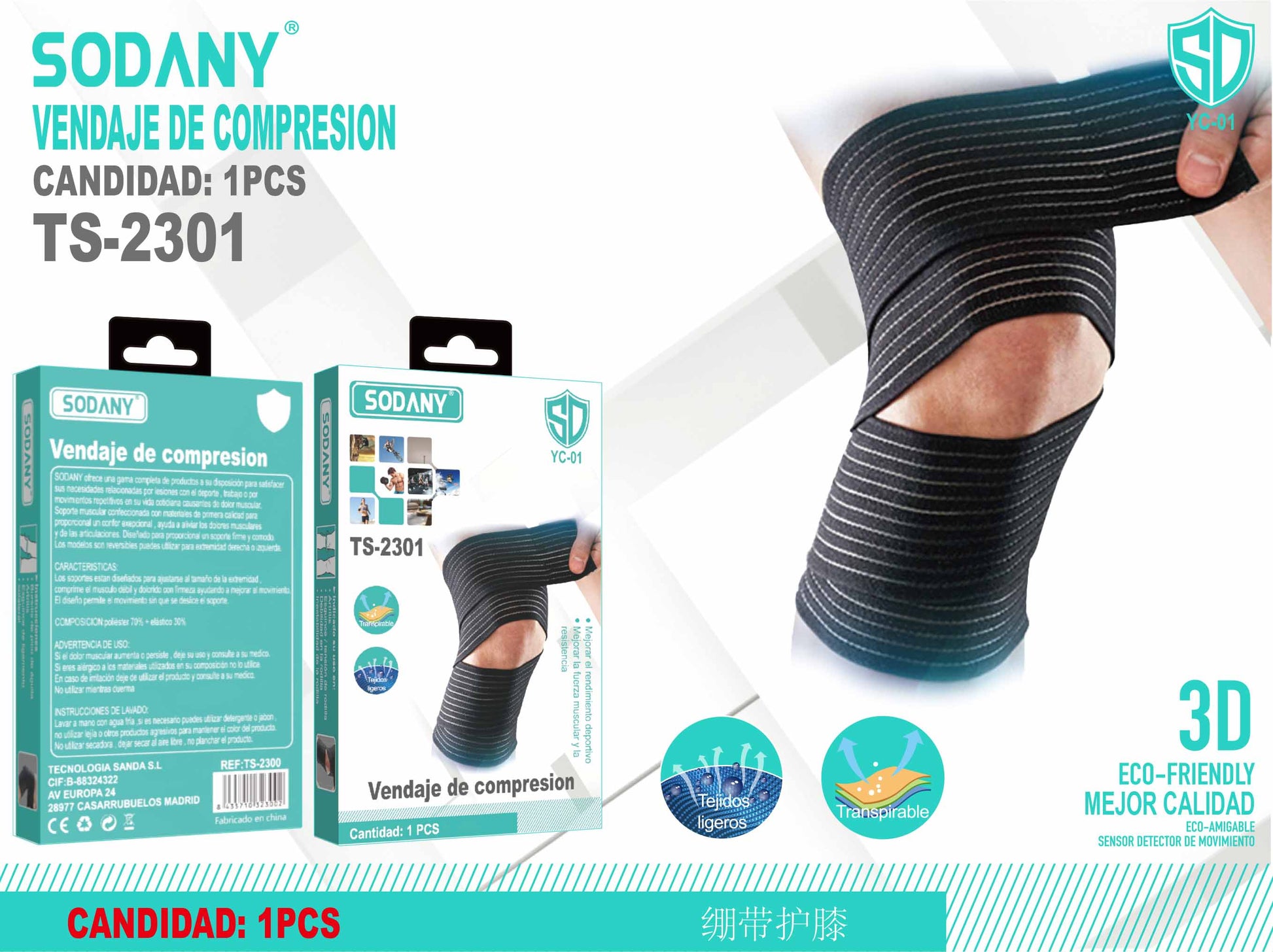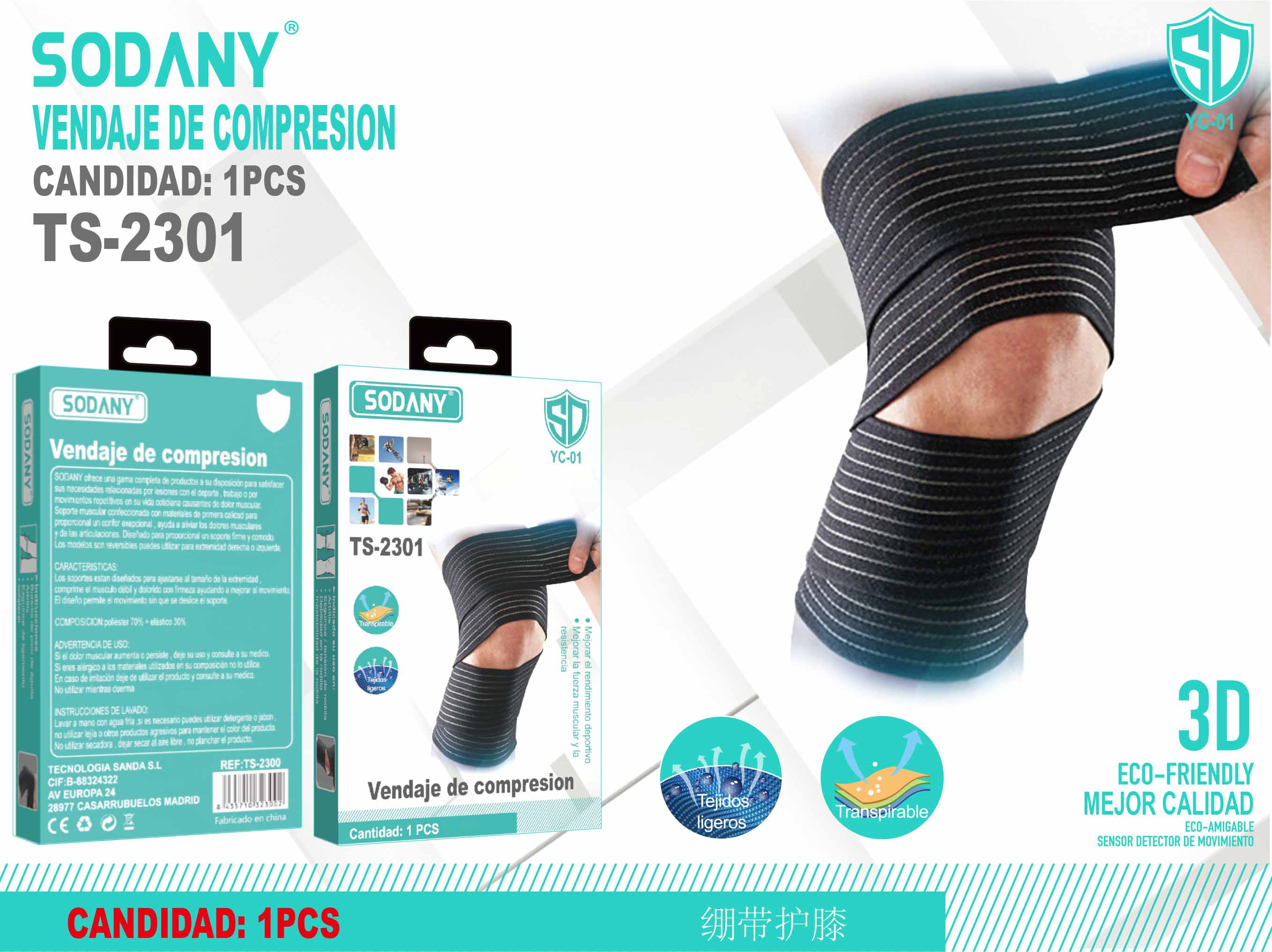 El vendaje de compresión Sodany TS-2301 está diseñado específicamente para proporcionar soporte y alivio a la articulación de la rodilla. Es ideal para la prevención y recuperación de lesiones relacionadas con deportes, trabajos físicos, y actividades que requieren esfuerzo repetitivo de la pierna, así como para aliviar el dolor asociado con la artritis, tendinitis y otras afecciones de la rodilla.