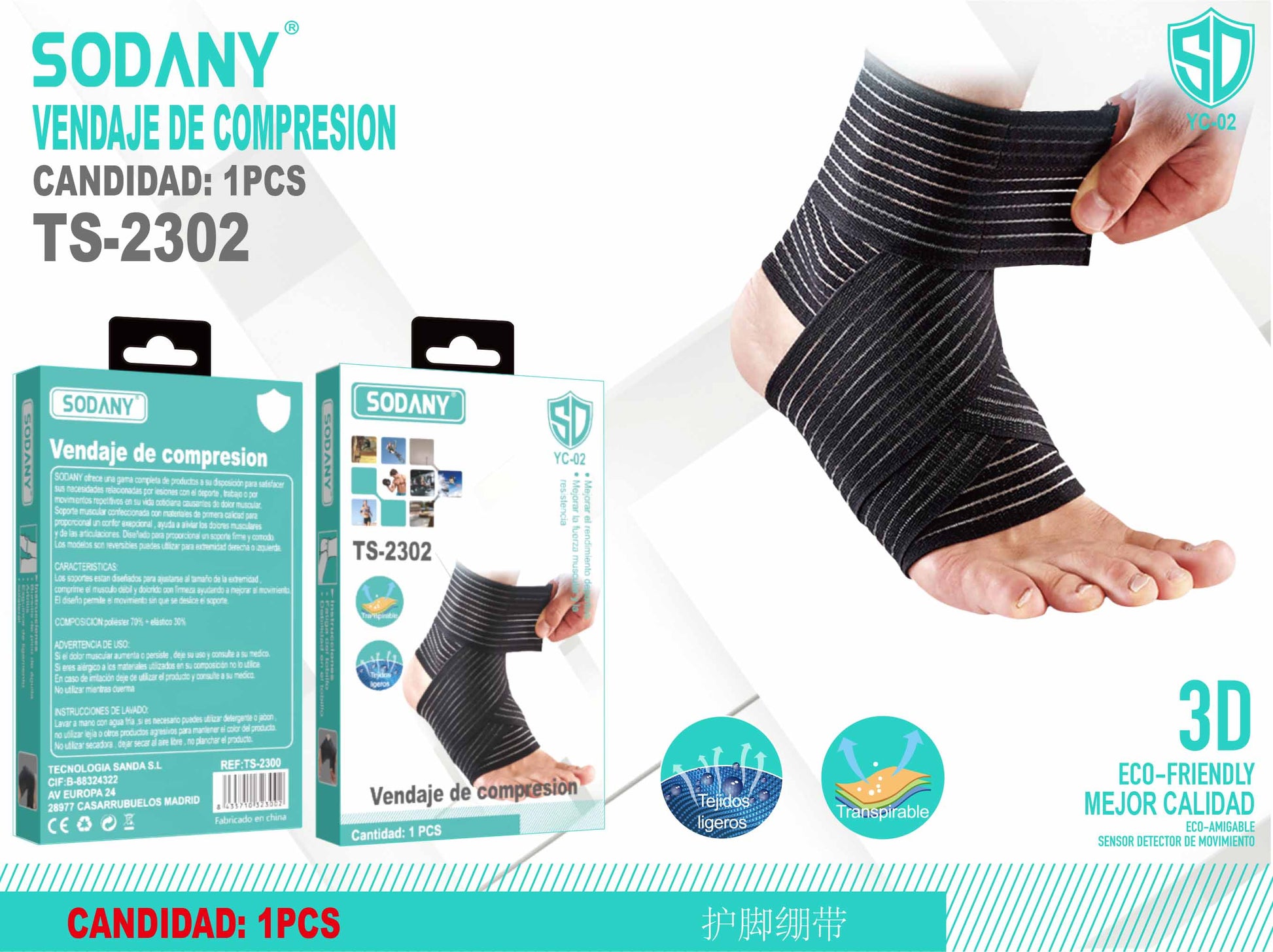 El vendaje de compresión Sodany TS-2302 está diseñado específicamente para proporcionar soporte y alivio a la articulación del tobillo. Es ideal para la prevención y recuperación de esguinces, torceduras, y otras lesiones relacionadas con deportes, trabajos físicos, y actividades diarias que ejercen presión sobre el tobillo.