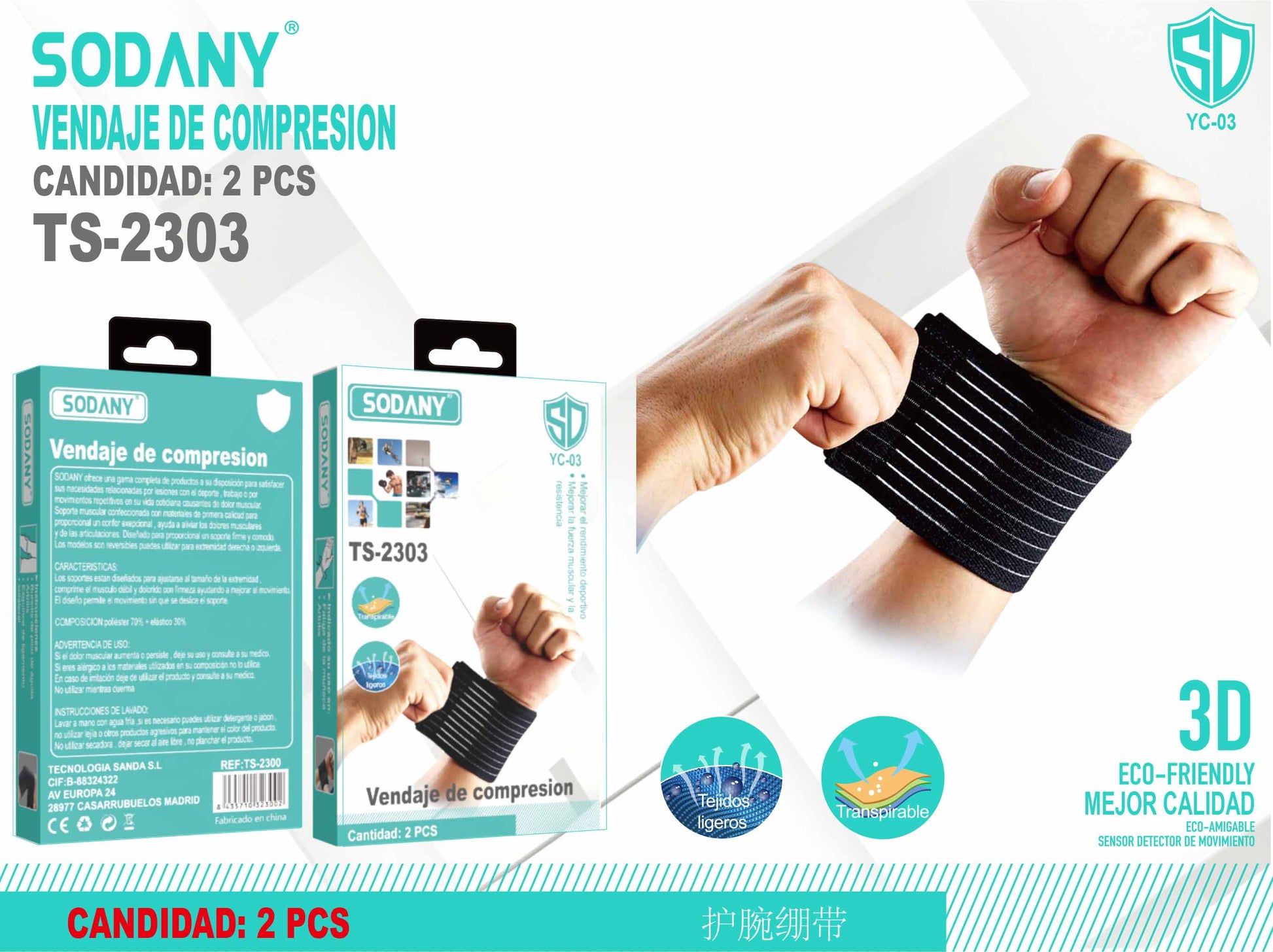 El vendaje de compresión Sodany TS-2303 está diseñado específicamente para proporcionar soporte y alivio a la articulación de la muñeca. Es ideal para la prevención y recuperación de lesiones, tendinitis, y para quienes realizan actividades que requieren un uso intensivo de las manos y muñecas.