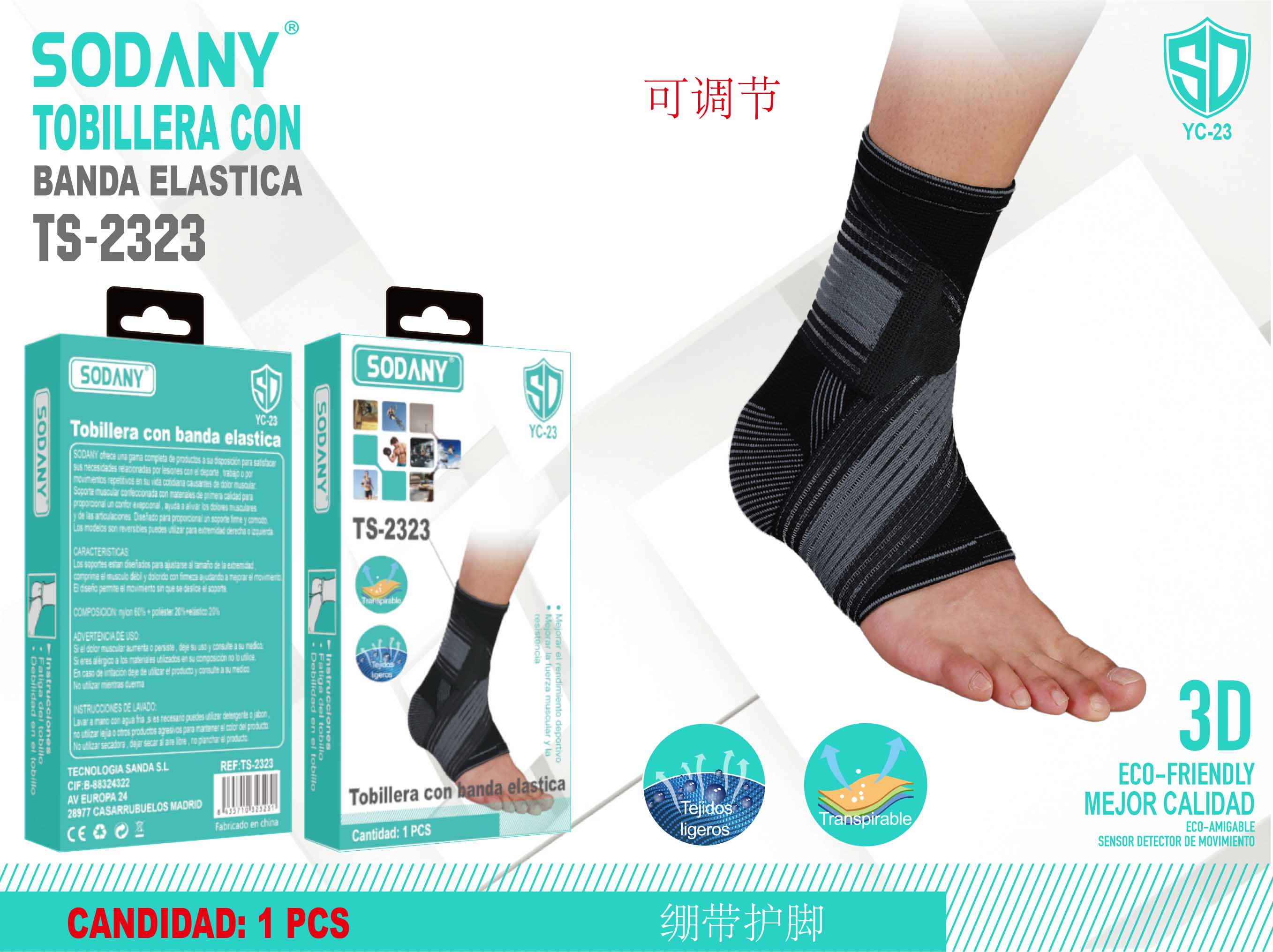Sodany TS-2323 Tobillera con Banda Elástica