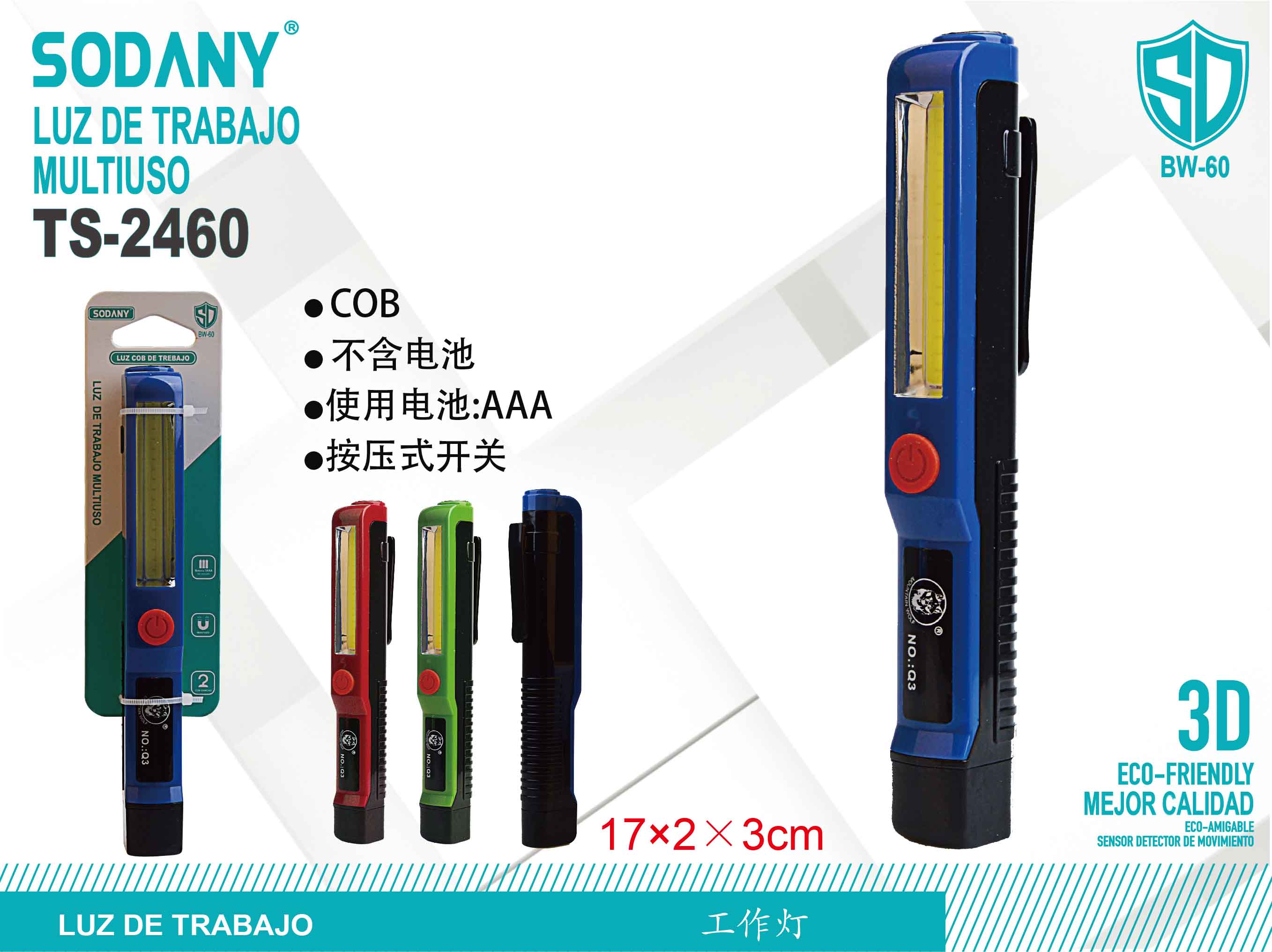 La luz de trabajo multiuso Sodany TS-2460 es una herramienta compacta y versátil diseñada para iluminar de manera eficiente en cualquier situación. Su fuente de luz COB proporciona un haz potente y uniforme, ideal para trabajos en talleres, actividades al aire libre o situaciones de emergencia. Su tamaño y diseño portátil permiten llevarla fácilmente en el bolsillo o colgarla gracias a su clip.