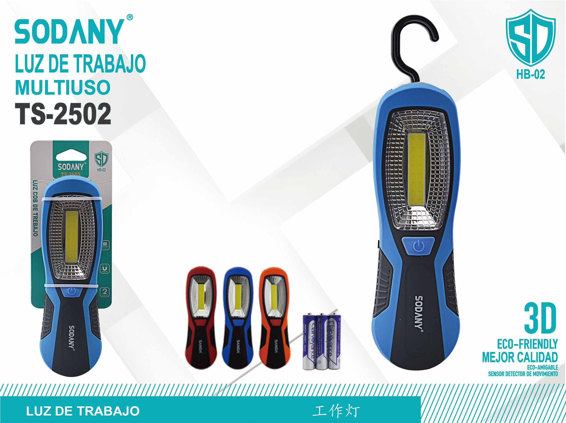 La luz de trabajo Sodany TS-2502 es una herramienta de iluminación portátil y multiuso, diseñada para brindar iluminación eficiente y práctica en una variedad de situaciones laborales. Perfecta para talleres, trabajos en el hogar, emergencias y más.