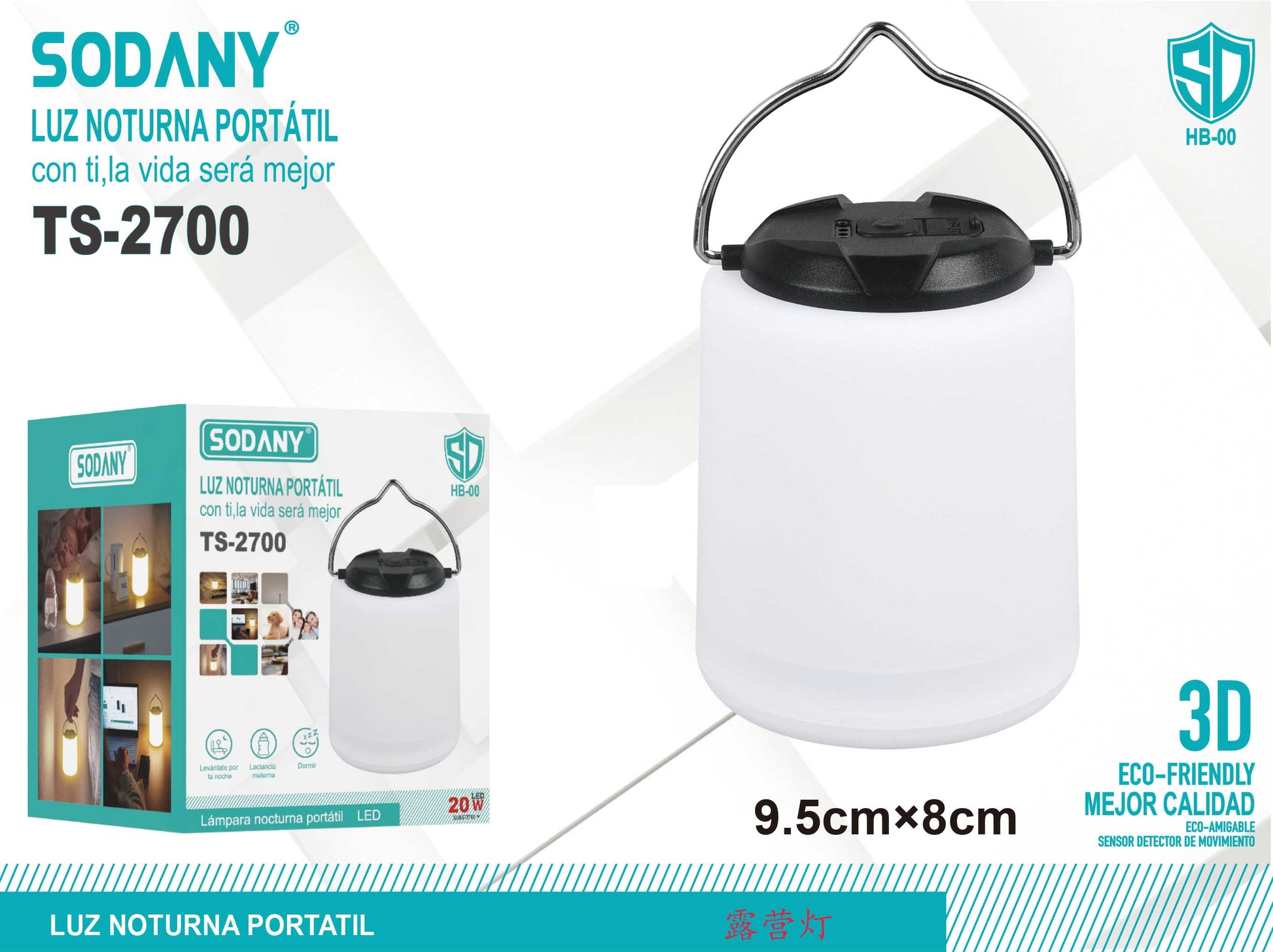 La luz nocturna portátil Sodany TS-2700 es una excelente opción para iluminar tu hogar o espacios exteriores de manera eficiente y ecológica. Con su diseño compacto y funcional, es perfecta para campamentos, emergencias o para añadir una luz suave en cualquier espacio.