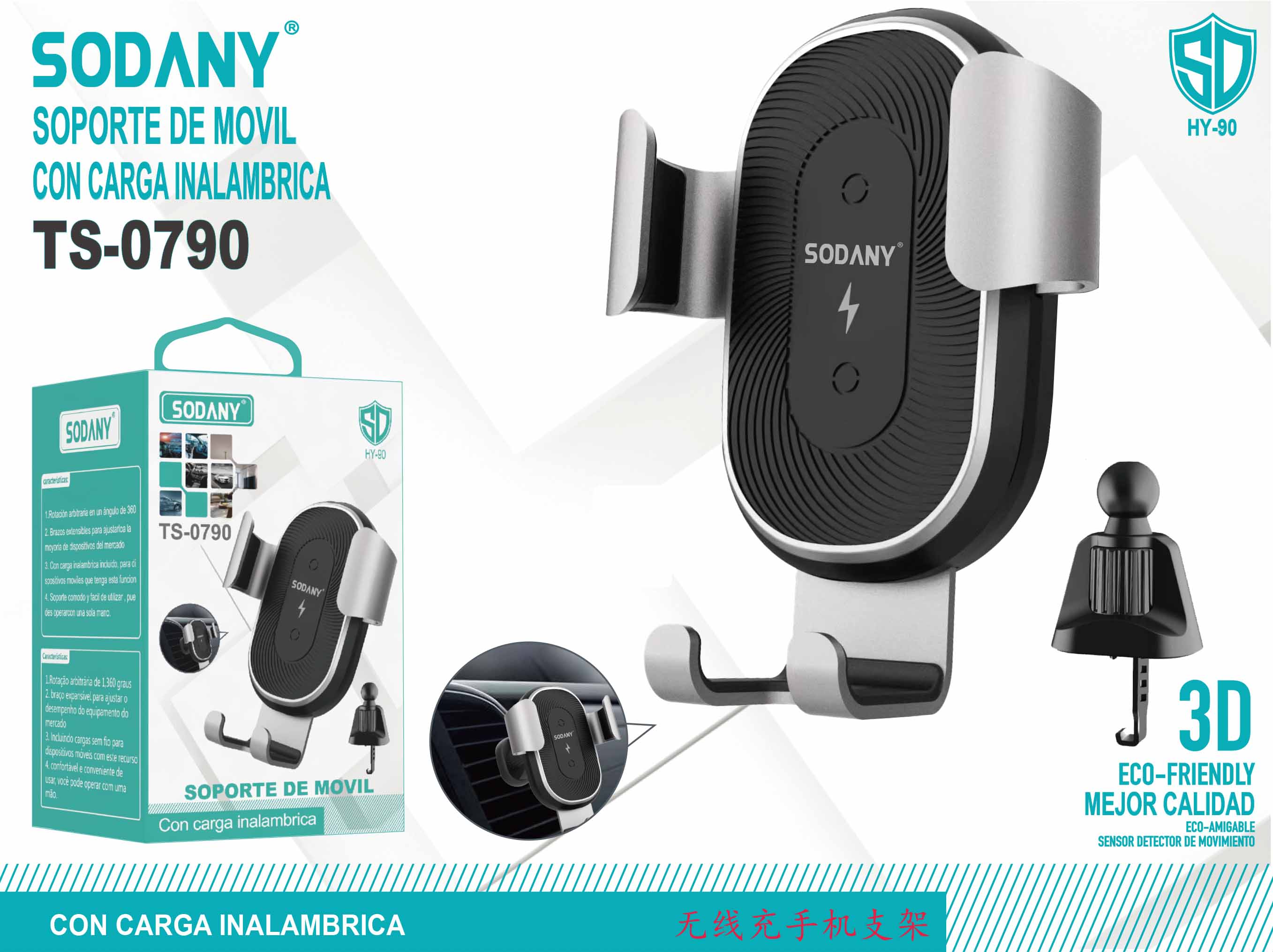 El Soporte de Móvil Sodany TS-0790 es una solución elegante y eficiente para mantener su teléfono seguro y cargado mientras conduce. Diseñado para su uso en automóviles, este soporte combina la comodidad de un soporte para móvil con la tecnología de carga inalámbrica, eliminando la necesidad de cables y facilitando el acceso a su dispositivo.