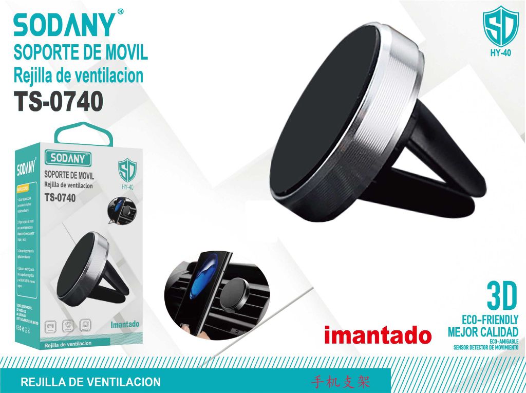 El Soporte de Móvil Imantado Sodany TS-0740 es una herramienta práctica y funcional para mantener tu smartphone en un lugar accesible mientras conduces. Este soporte está diseñado para acoplarse a la rejilla de ventilación de tu coche, ofreciendo un agarre firme y seguro gracias a su potente imán.