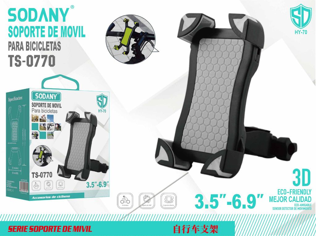 El Soporte de Móvil para Bicicletas Sodany TS-0770 es un accesorio indispensable para ciclistas que necesitan mantener su smartphone a la vista y seguro mientras pedalean. Diseñado para adaptarse a una amplia gama de tamaños de dispositivos, este soporte proporciona un agarre firme y resistente, asegurando que tu móvil permanezca en su lugar incluso en terrenos accidentados.