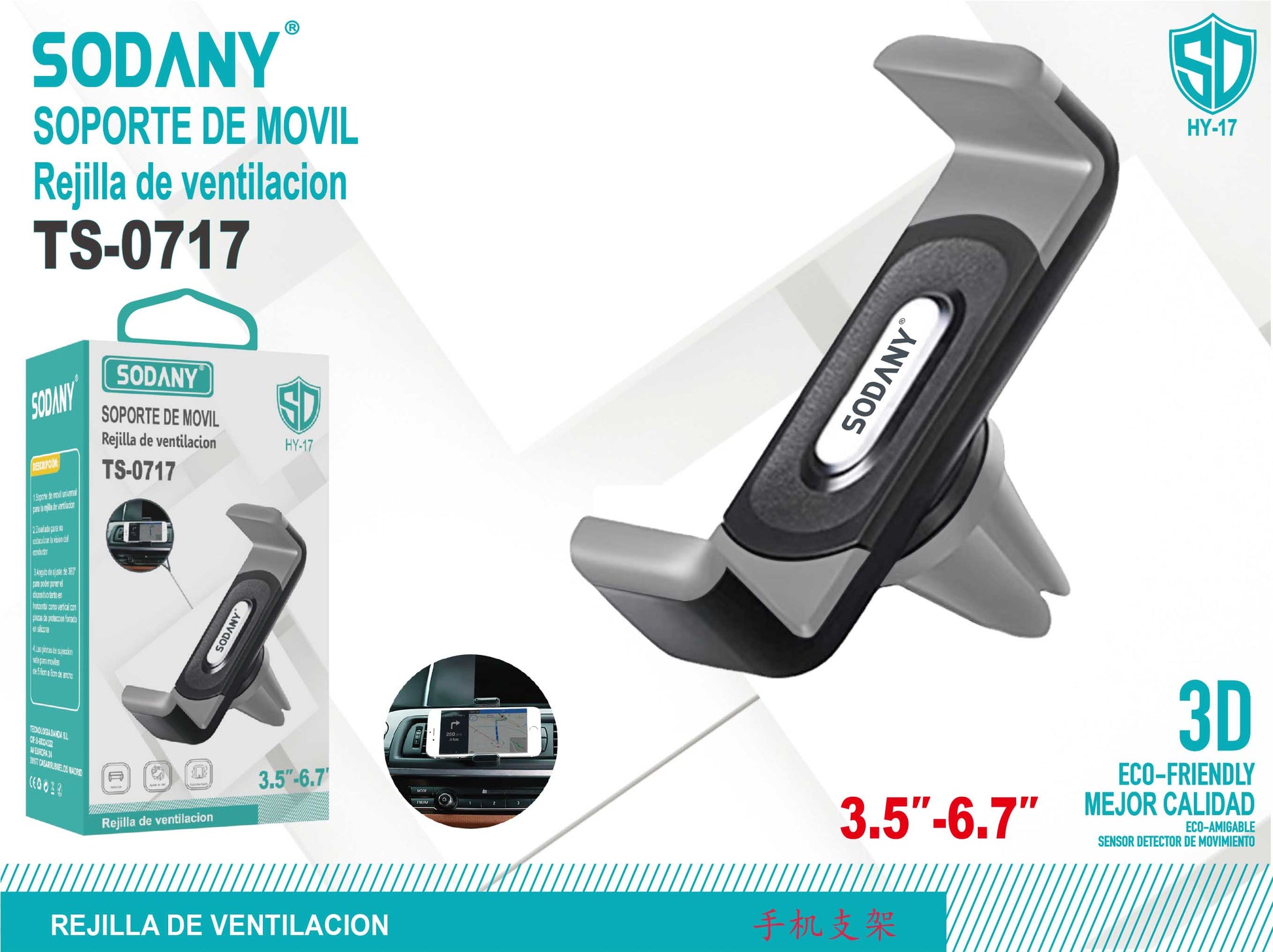 El Soporte de Móvil para Rejilla de Ventilación Sodany TS-0717 es un accesorio práctico y sencillo que permite fijar de forma segura tu smartphone en el coche, asegurando una conducción más cómoda y segura.