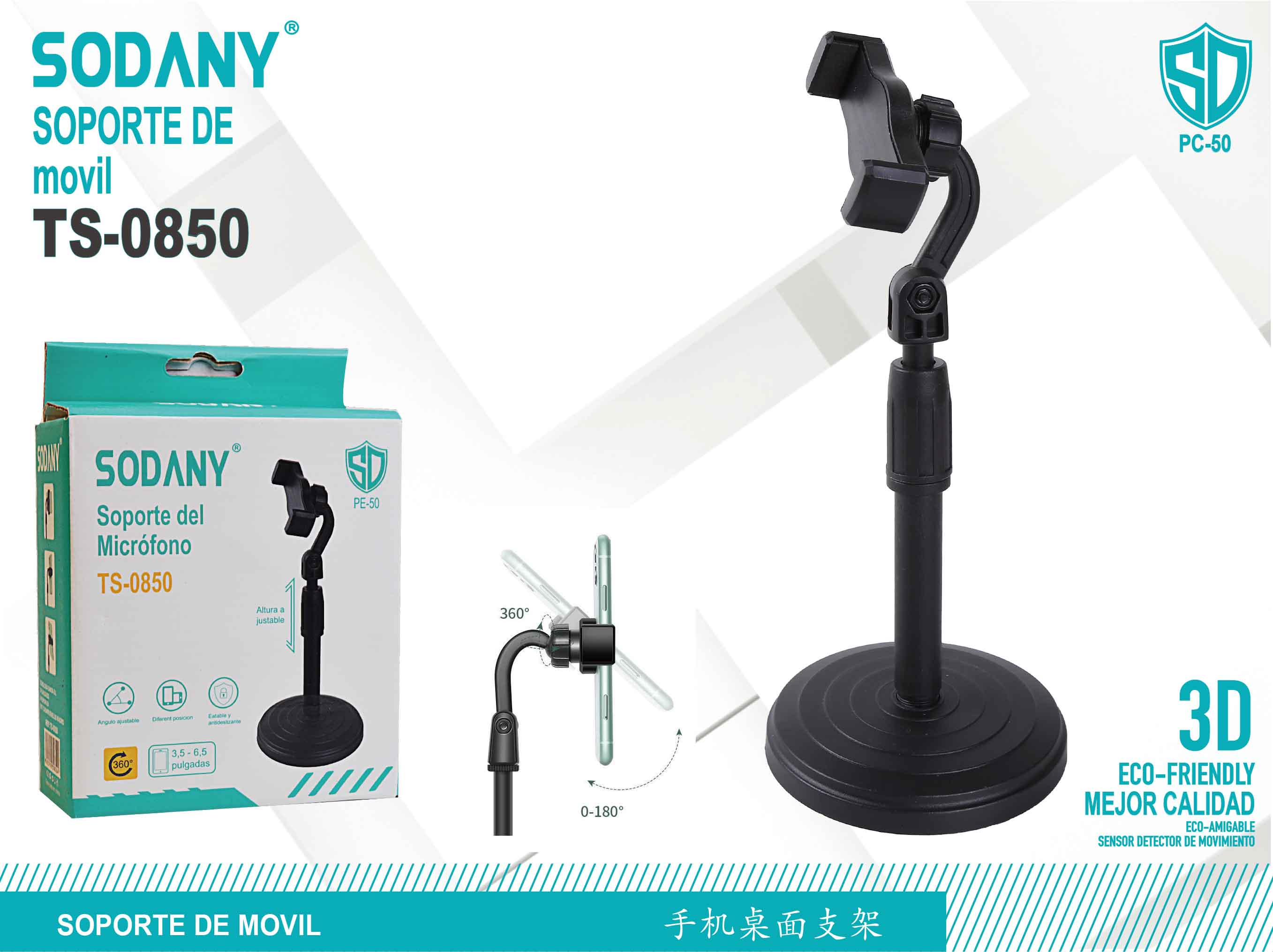 El Soporte de Móvil Sodany TS-0850 es un accesorio imprescindible para quienes buscan una manera cómoda y segura de mantener su dispositivo móvil en una posición ideal mientras trabajan, estudian o disfrutan de entretenimiento. Este soporte de escritorio ofrece una rotación completa de 360 grados, permitiendo un ajuste óptimo del ángulo de visión según las necesidades del usuario.