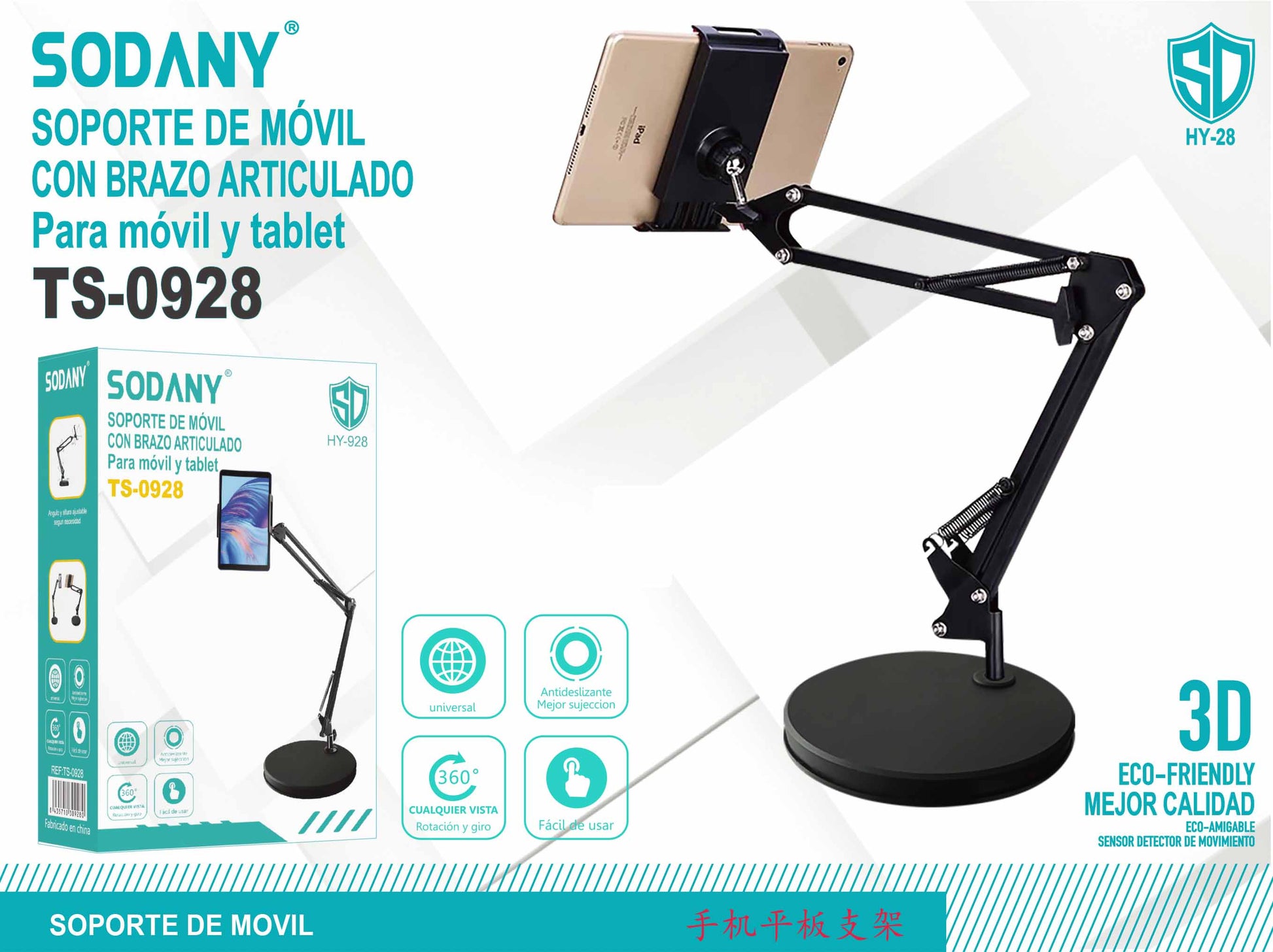 El Soporte de Móvil y Tablet Sodany TS-0928 con brazo articulado es la solución ideal para aquellos que buscan comodidad y versatilidad al utilizar sus dispositivos móviles. Diseñado para proporcionar estabilidad y flexibilidad, este soporte es perfecto para mantener tu móvil o tablet en la posición perfecta mientras trabajas, estudias o disfrutas de contenido multimedia.