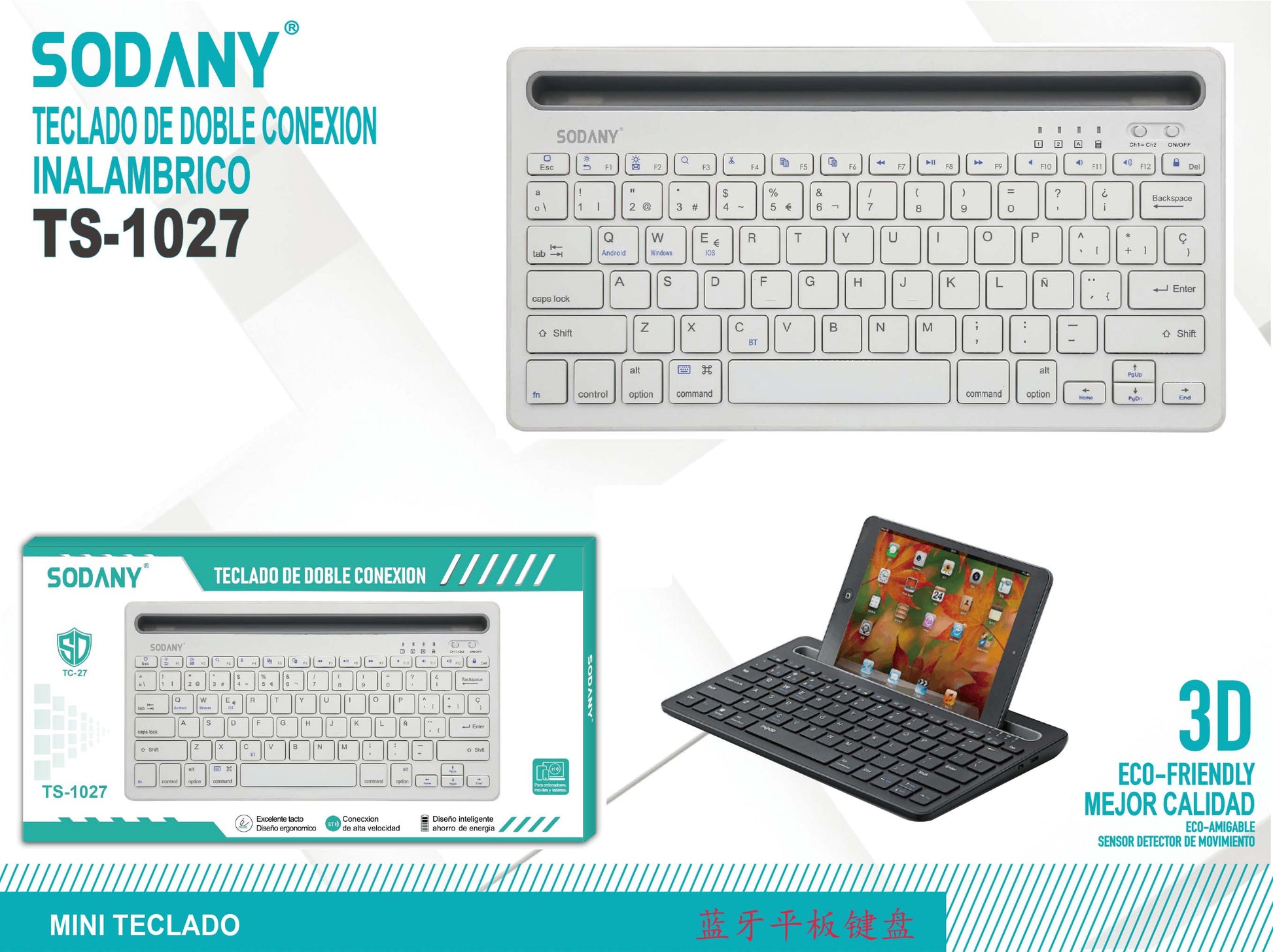 El Teclado Sodany TS-1027 es una opción elegante y compacta para quienes buscan conectividad inalámbrica dual, compatible con dispositivos Bluetooth y receptor USB. Con su diseño estilizado en color blanco, es perfecto para usar con tablets, smartphones y otros dispositivos, ofreciendo una experiencia de escritura cómoda y práctica.