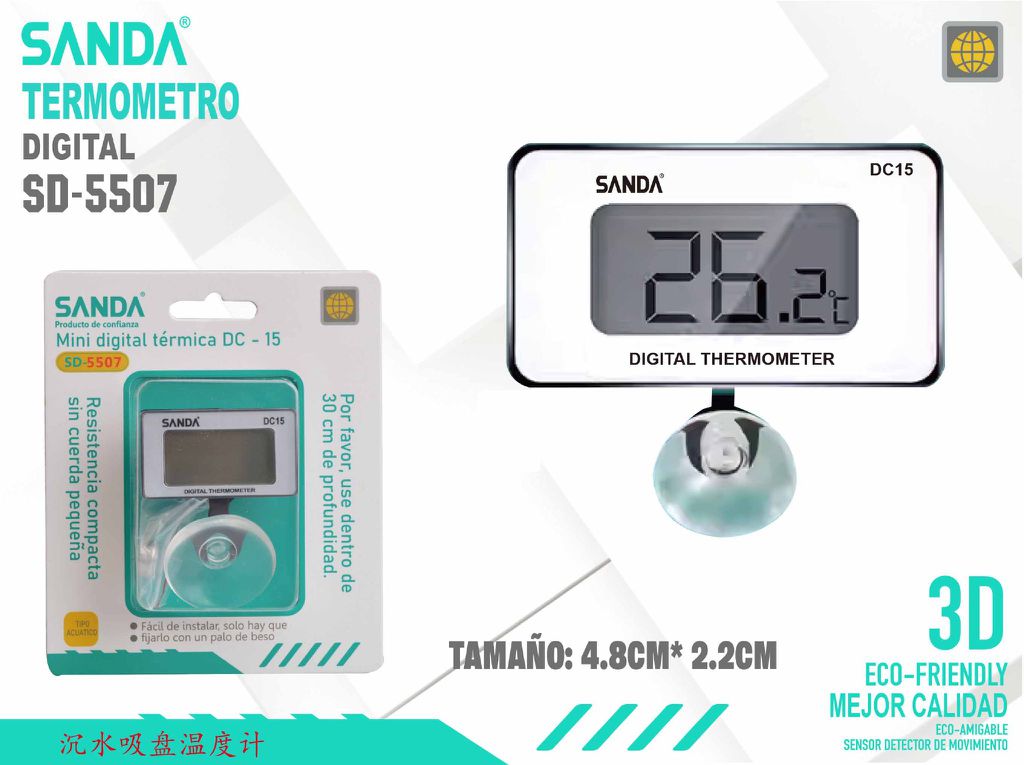 El termómetro digital Sanda SD-5507 es una solución práctica y compacta para medir la temperatura en acuarios y otros entornos húmedos. Equipado con una ventosa, este termómetro se fija fácilmente a superficies lisas, permitiendo una lectura precisa y constante de la temperatura. Con su tamaño reducido de 4.8cm x 2.2cm, es discreto pero eficiente, ideal para acuarios y otros espacios donde se requiera un monitoreo constante de la temperatura.