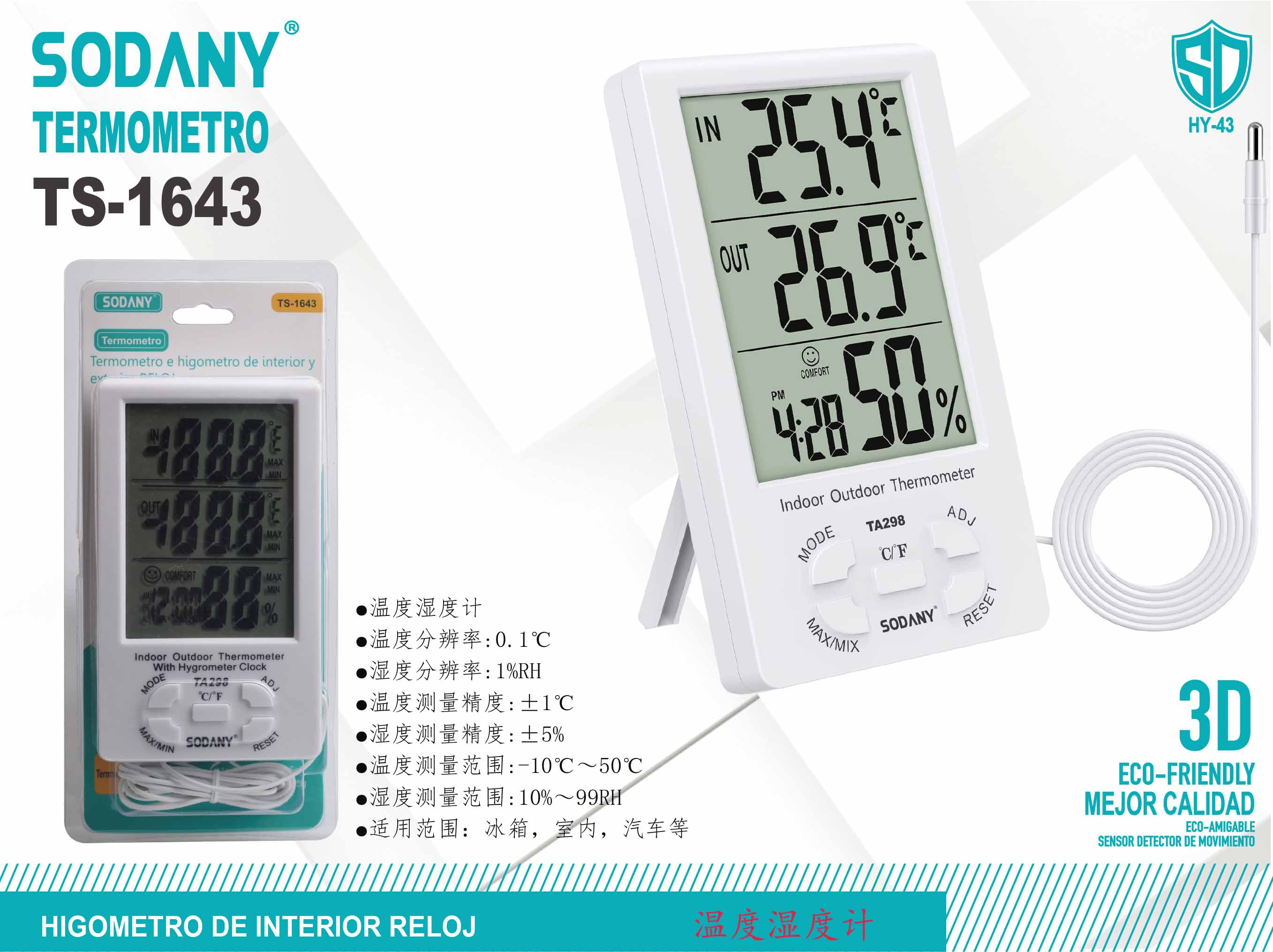 Termómetro e Higrómetro Digital para Interior y Exterior Sodany TS-1643