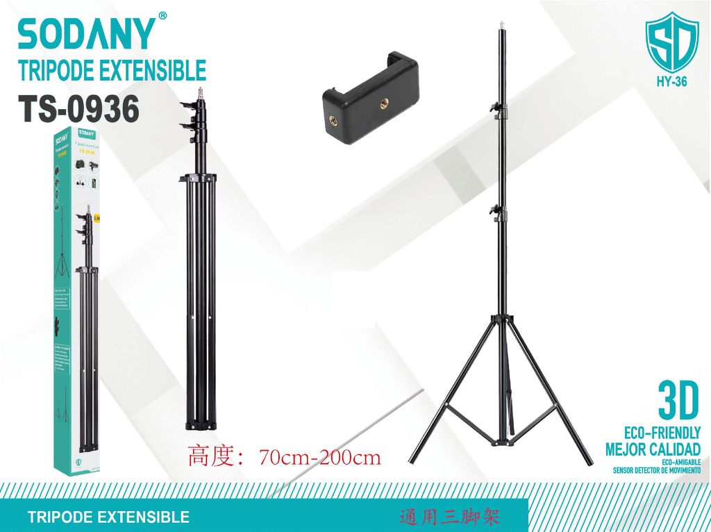 El Trípode Extensible Sodany TS-0936 es un accesorio esencial para aquellos que buscan estabilidad y versatilidad en la captura de fotos y videos. Este trípode está diseñado para ser ajustable en altura, ofreciendo un rango de 70 cm a 200 cm, lo que lo hace ideal para diferentes situaciones, ya sea en interiores o exteriores.